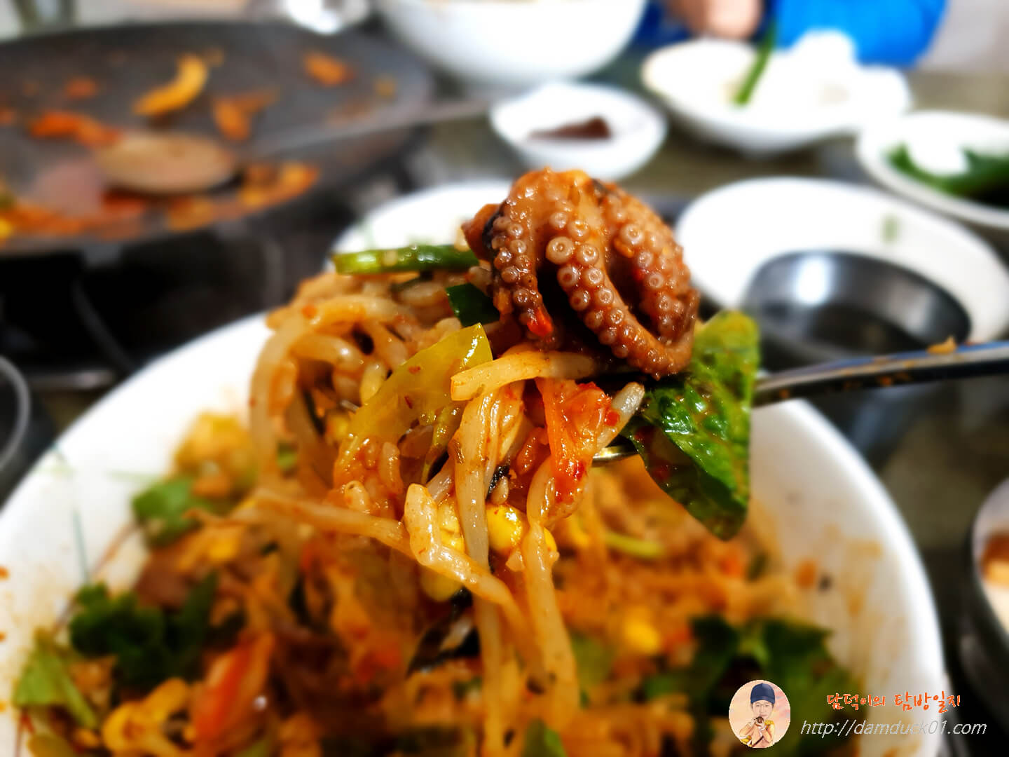 그런데 밑에 자세히 보면 빨간 맛이 느껴지는 양념과 콩나물 그리고 주꾸미가 보여요.