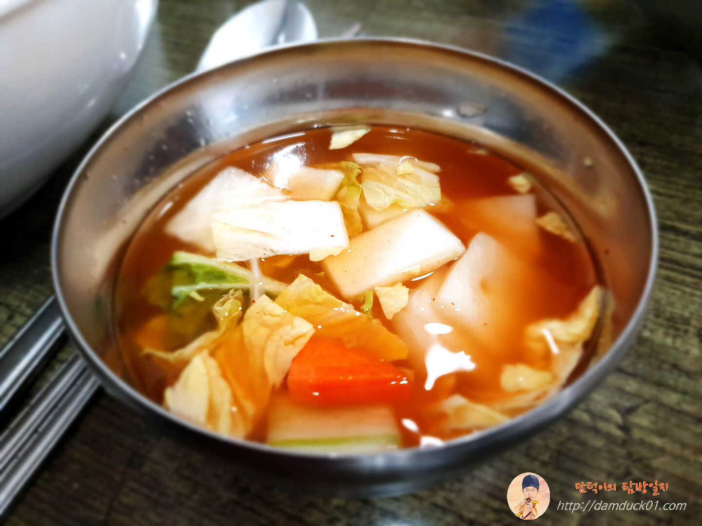 요즘 날씨에 시원한 나박김치는 안 어울린다고 생각할 수도 있지만 매운 주꾸미 비빔밥을 먹다 보면 먹게 됩니다.