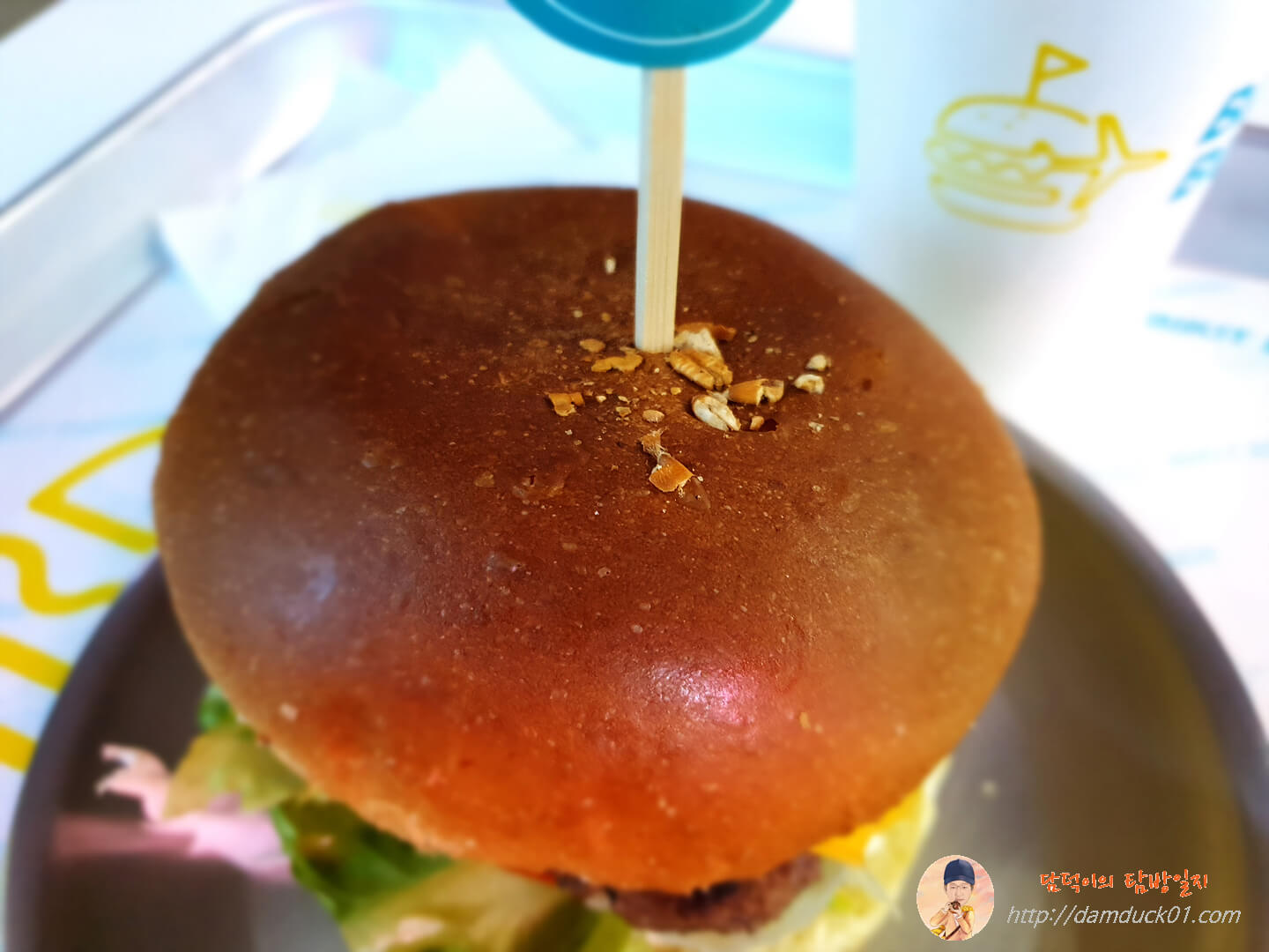 상당히 두툼한 두께의 버거입니다. 가운데에 나무 꼬치로 고정이 되어 있어요.