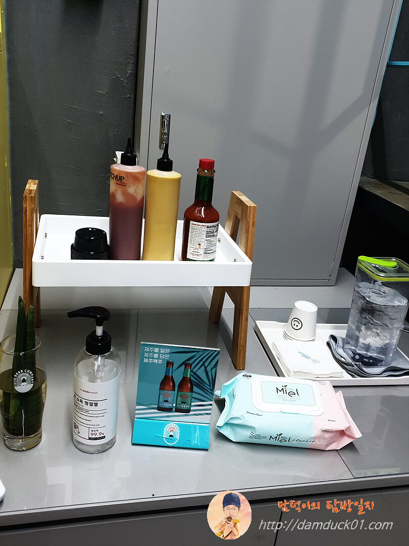 엘리베이터 옆에는 위와 같이 물부터 소스까지 전부 구비되어 있으니 알아서 챙겨가시면 되는데 높은 가격 치고는 모든 게 손님이 알아서 해야 한다는 게 저는 좋게 보이지는 않더라고요.