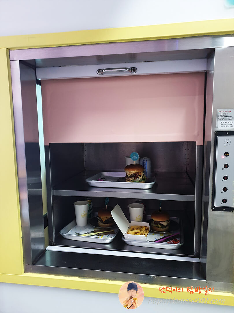 1층에 자리가 없어서 2층으로 올라갔는데 2층에는 음식을 받을 수 있는 엘리베이터가 있어요.