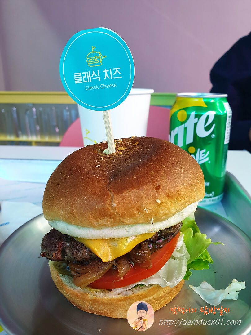 어제 제가 먹은 점심인 비킷 버거의 클래식 치즈 버거입니다.