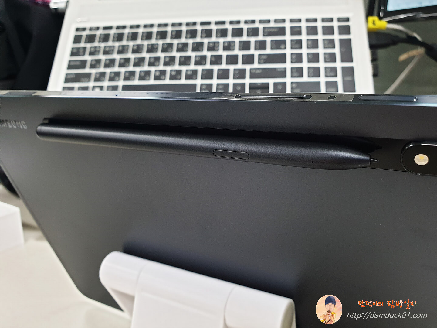 S펜의 수납은 갤럭시 탭 S6와 동일하게 후면에 이렇게 붙이는 방식인데 갤럭시 탭 S6와 비교해서 더 단단하게 붙는 느낌입니다.