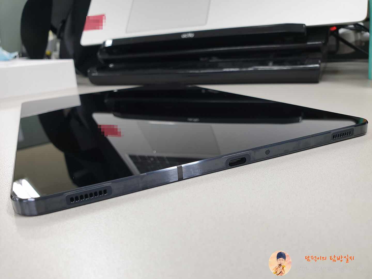 요즘 나오는 갤럭시 스마트폰의 카툭튀에 비하면 양반이긴 하지만 갤럭시 탭 S7도 카메라가 약간 튀어나와 있긴 하네요.