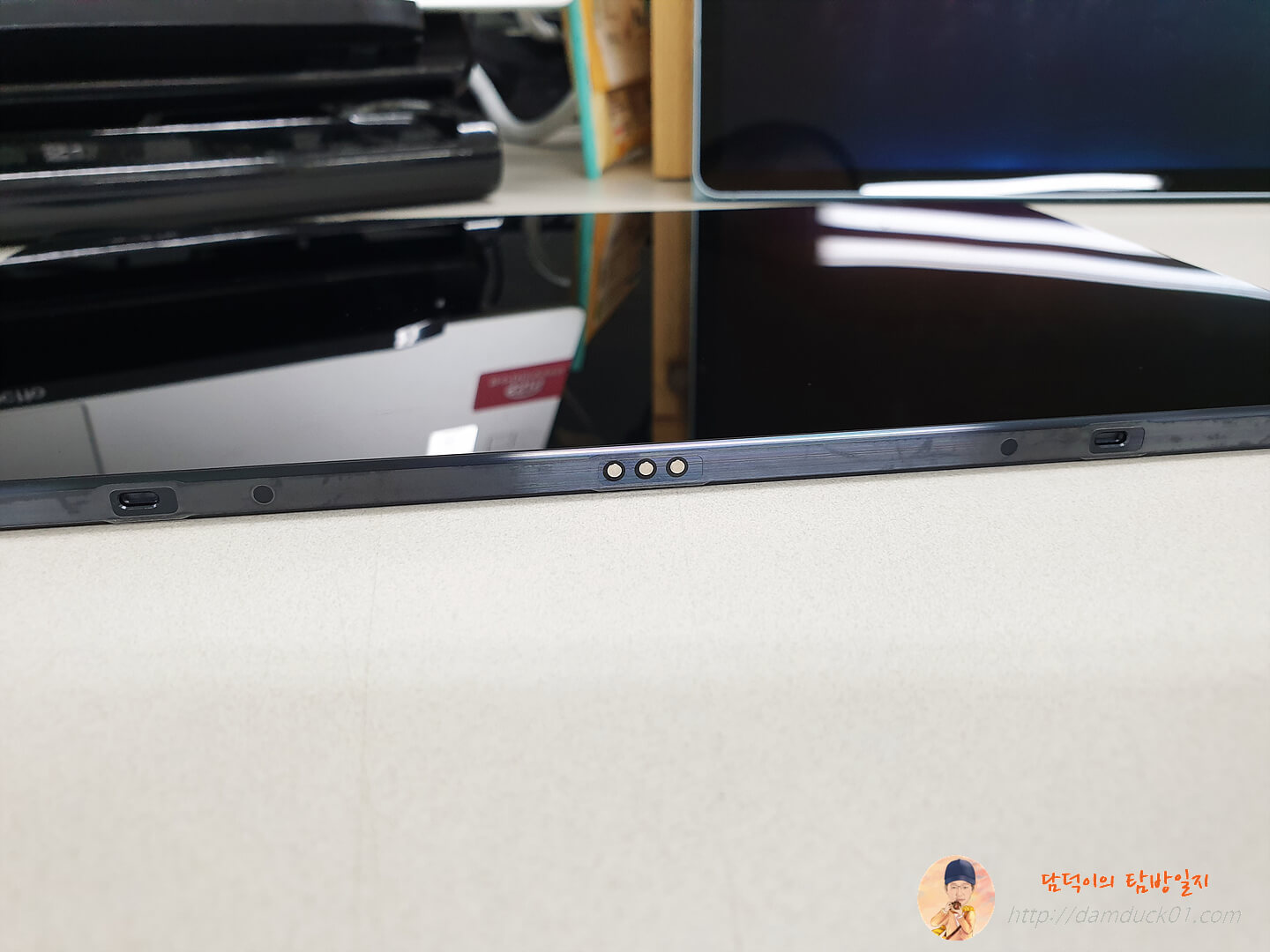 가로 기준에서 하단에 키보드를 연결하기 위한 포고핀이 적용되어 있고요.
