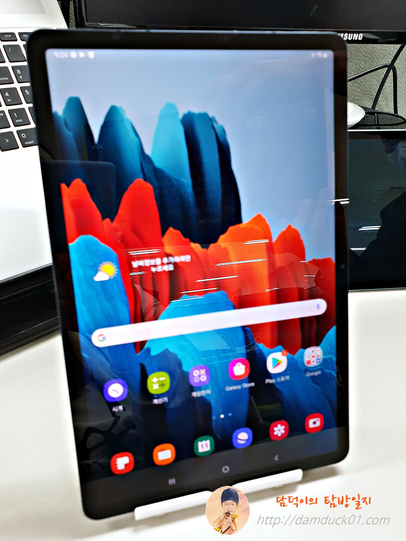 요즘 나오는 갤럭시 스마트폰의 카툭튀에 비하면 양반이긴 하지만 갤럭시 탭 S7도 카메라가 약간 튀어나와 있긴 하네요.
