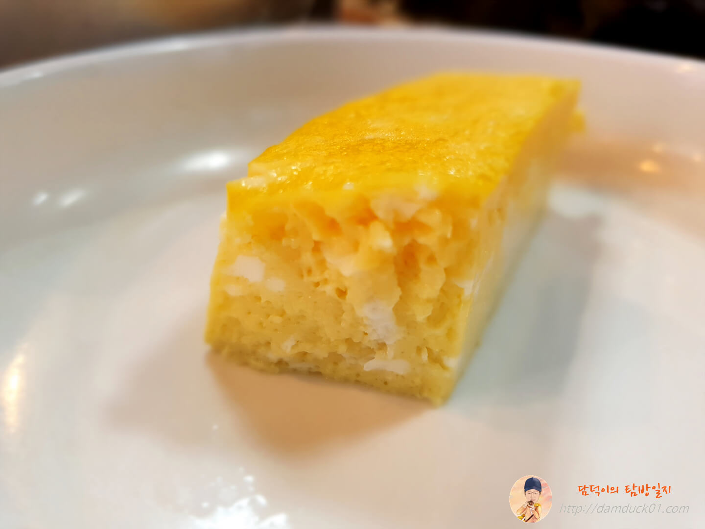 그리고 접시에 한 조각 들어 있는 이 달걀찜도 다른 곳의 달걀찜과는 달랐어요.