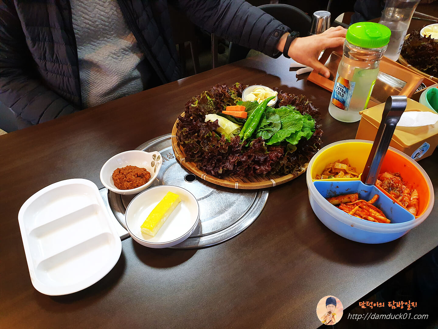 우리 탐방원은 쌈밥 정식을 주문했는데 주문 전 미리 테이블에는 위와 같이 쌈밥 재료가 준비되어 있네요.