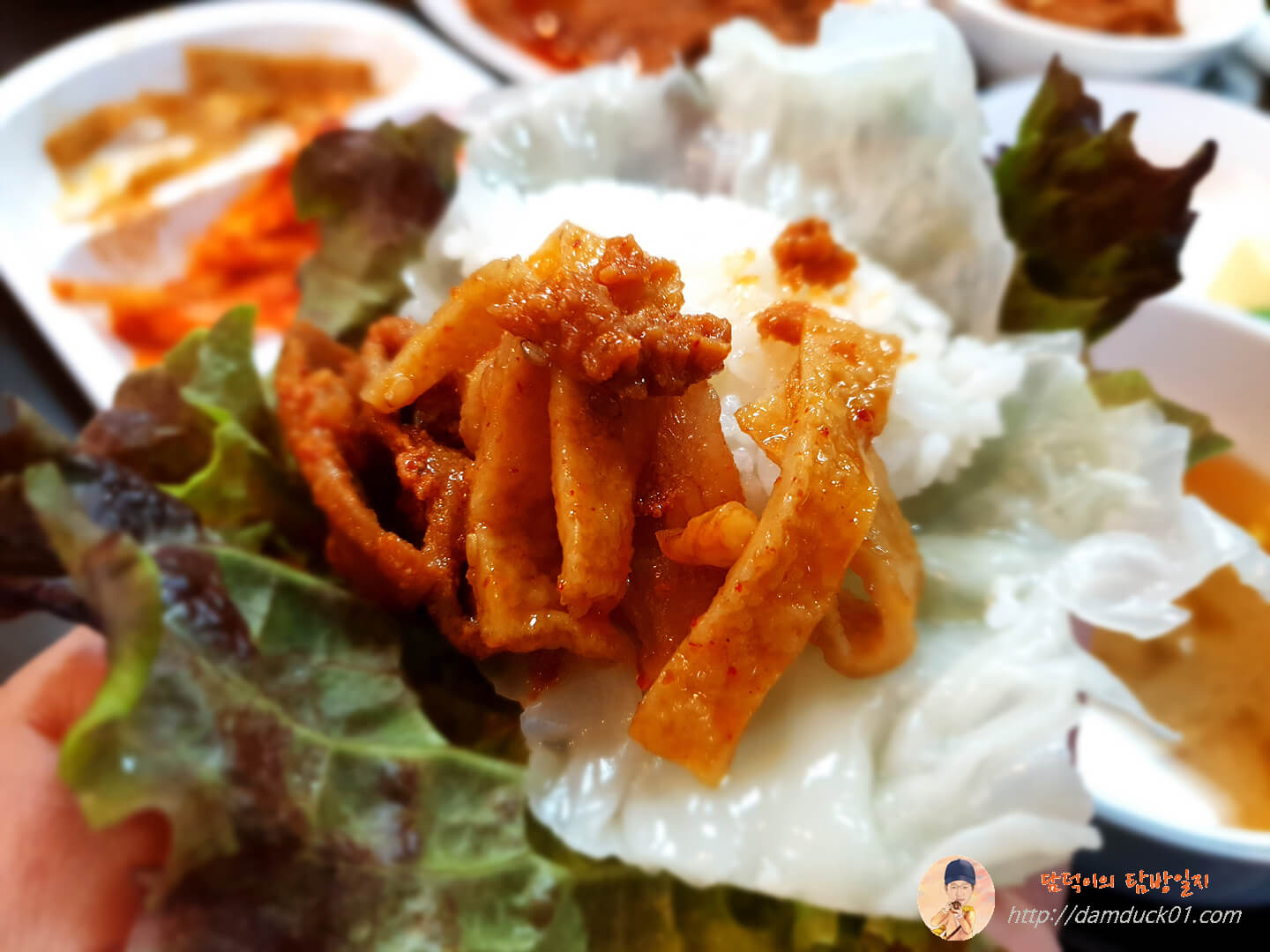 우연히 들어갔지만 너무 만족스러운 한 끼를 먹고 나온 돼지 한판 오신정의 쌈밥 정식.
