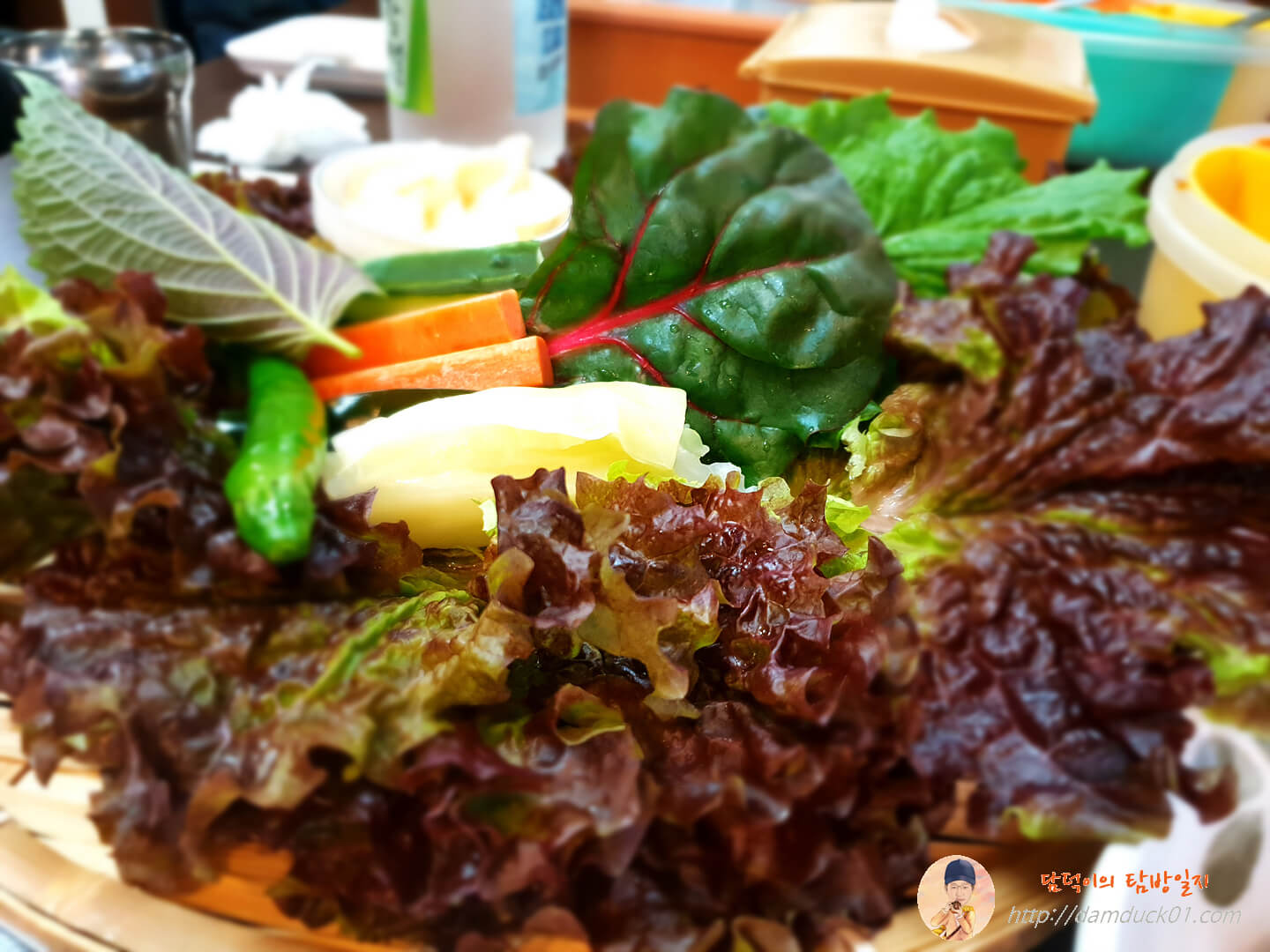 우리 탐방원은 쌈밥 정식을 주문했는데 주문 전 미리 테이블에는 위와 같이 쌈밥 재료가 준비되어 있네요.