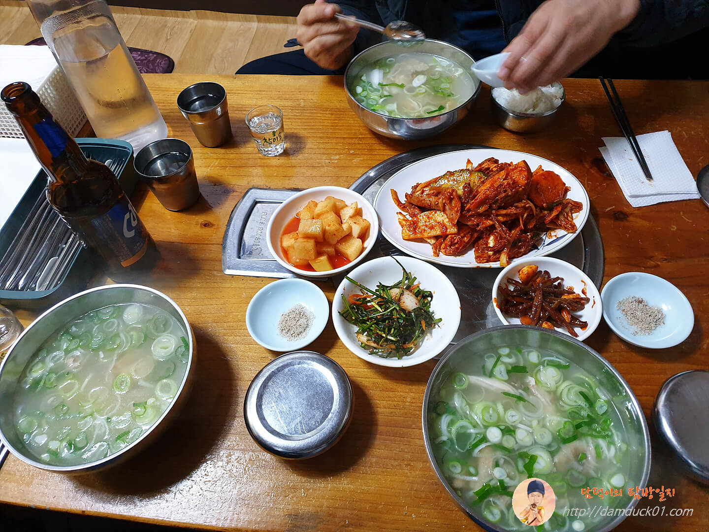 열리지 않는 문에서 들여본 것과는 다르게 정문으로 들어온 실내는 꽤 크네요. 가게를 확장한 거 같은데 입식과 좌식 합해서 꽤 많은 테이블이 있었습니다. 술만 먹을 건 아니고 간단하게 저녁을 먹을 거라서 닭곰탕(6,000원) 3개랑 닭무침(20,000원) 하나를 주문했어요. 술은 소주랑 맥주 하나씩, 전 맥주 먹을 거라서요. ^^;