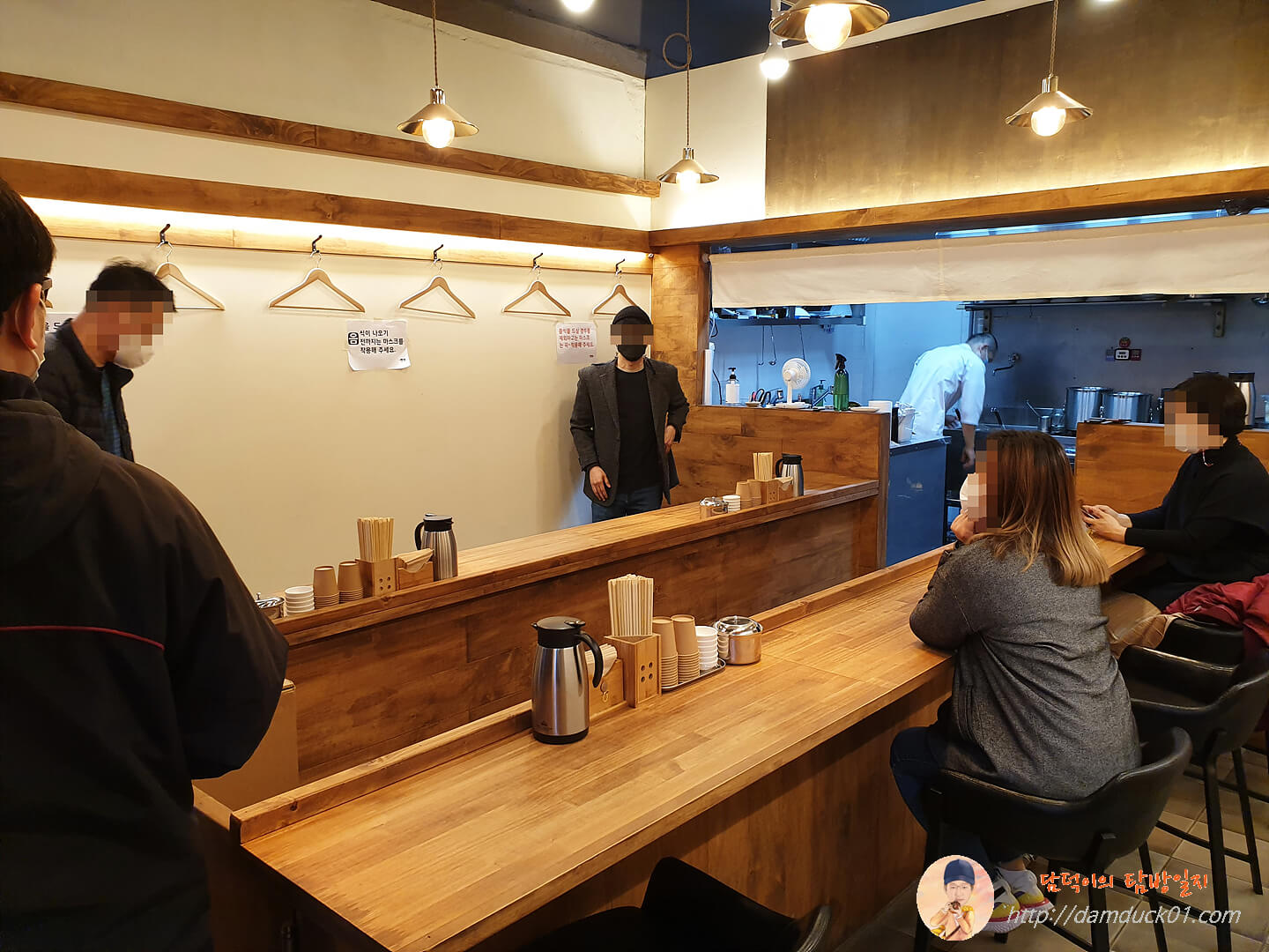 손님들이 가게 안에 들어와서 주문을 하고 기다려야 하다 보니 밥 먹는 손님 뒤에 서 계세요.