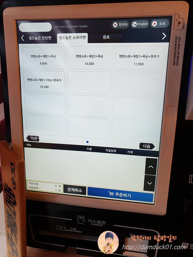 구성에 따라 약간의 가격 차이가 있는데 저는 기본 쇼유라멘(9,000원)으로 주문했습니다.