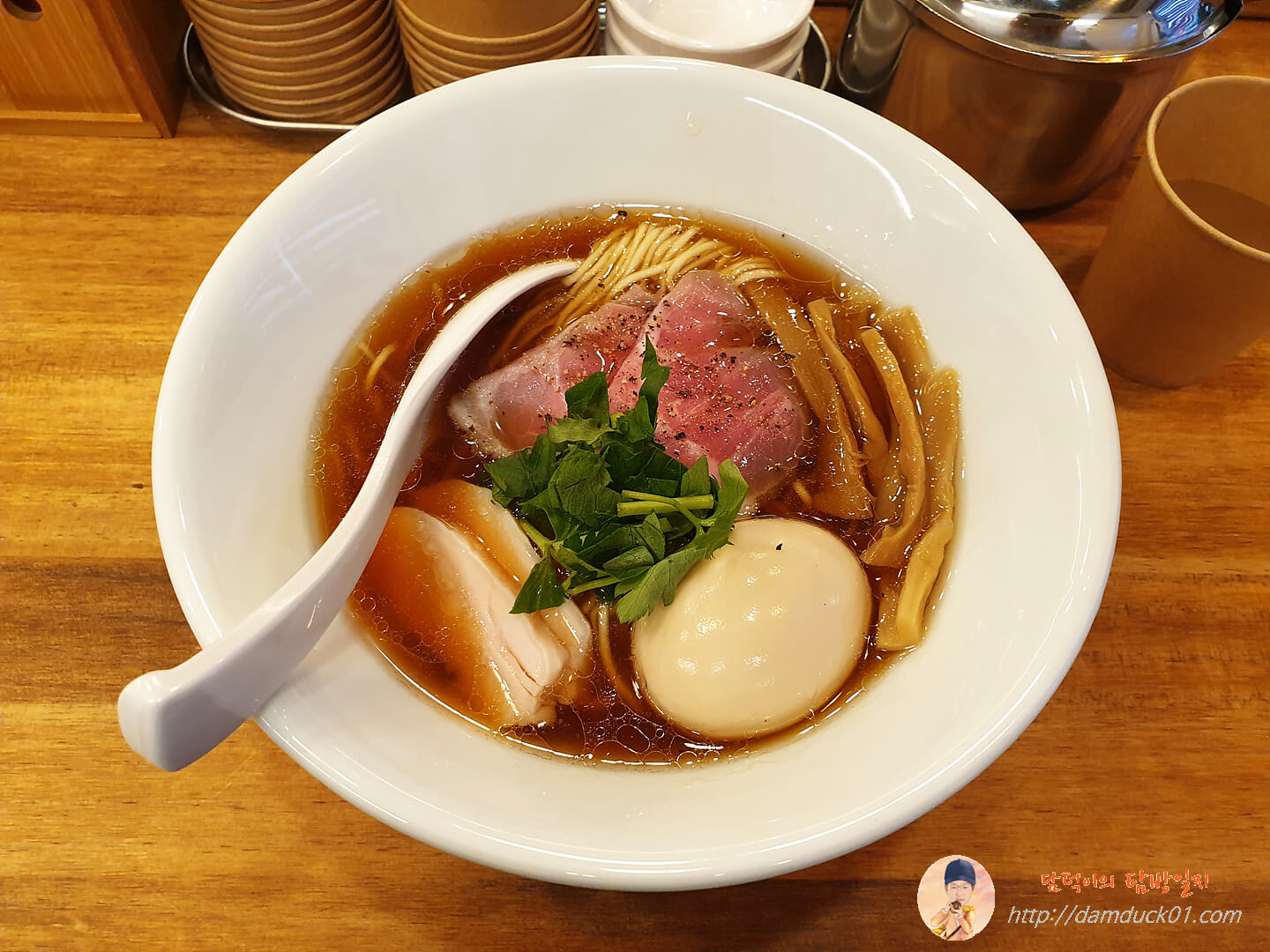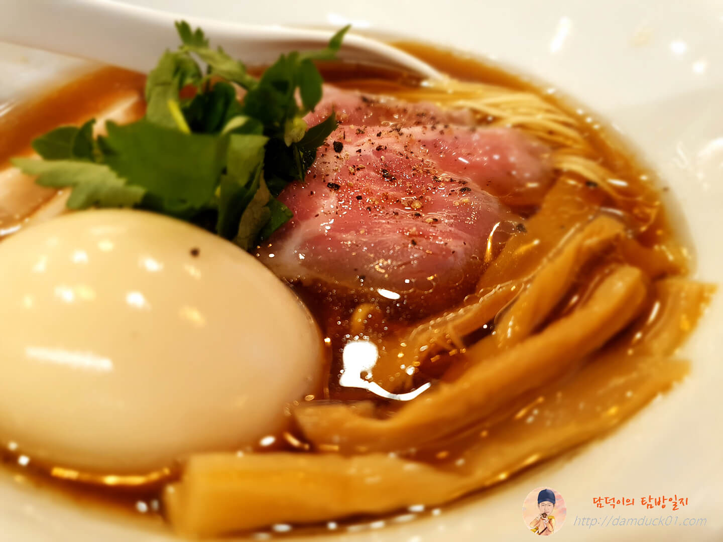 참 힘들게 마주하게 된 멘텐의 쇼유라멘이 나왔습니다.