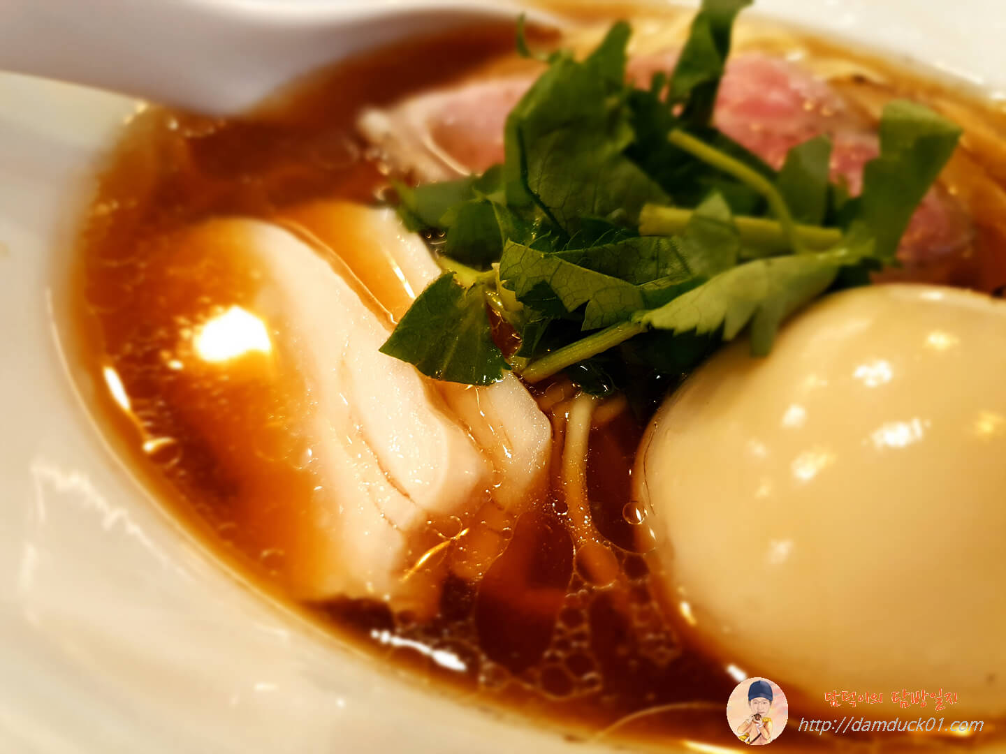 국물에 졸여진 건지 따로 졸여서 넣은 건지 일본식 간장인 쇼유 색에 이쁘게 물들었네요.