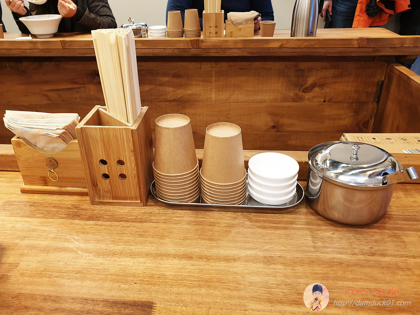 홀을 관리하는 직원이 없다 보니 손님이 혼자 모든 걸 할 수 있도록 자리에 다 마련되어 있네요.