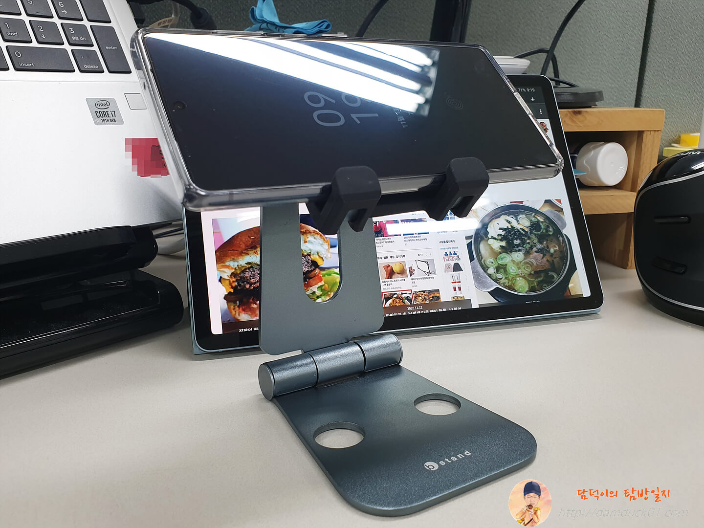 세로 거치, 가로 거치 모두 가능하고 태블릿도 잘 거치가 되는데 그럼 이제 위시비 bstand M 스마트폰 태블릿 2중 접이식 스탠드를 환불하기로 한 결정적 이유를 알려드릴게요. 단순히 거치만 한다면 큰 문제가 없었는데 부장님이 이 거치대를 구매한 이유는 갤럭시 탭 S7을 거치하고 화면 조작이나 간단한 필기를 하기 위함이었거든요. 그런데 거치 후 화면 조작을 하면 태블릿이 자꾸 떨어집니다. 태블릿 크기가 커서 그런 걸까?라는 생각에 스마트폰을 거치하고 조작을 해도 같은 상황이 벌어져요.