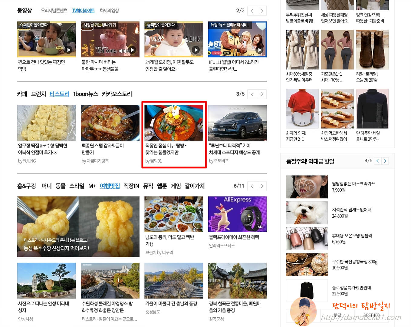 담덕이의 탐방일지 총 35번째 다음 메인 등록. 11월 두 번 등록 성공. 게다가 대박!