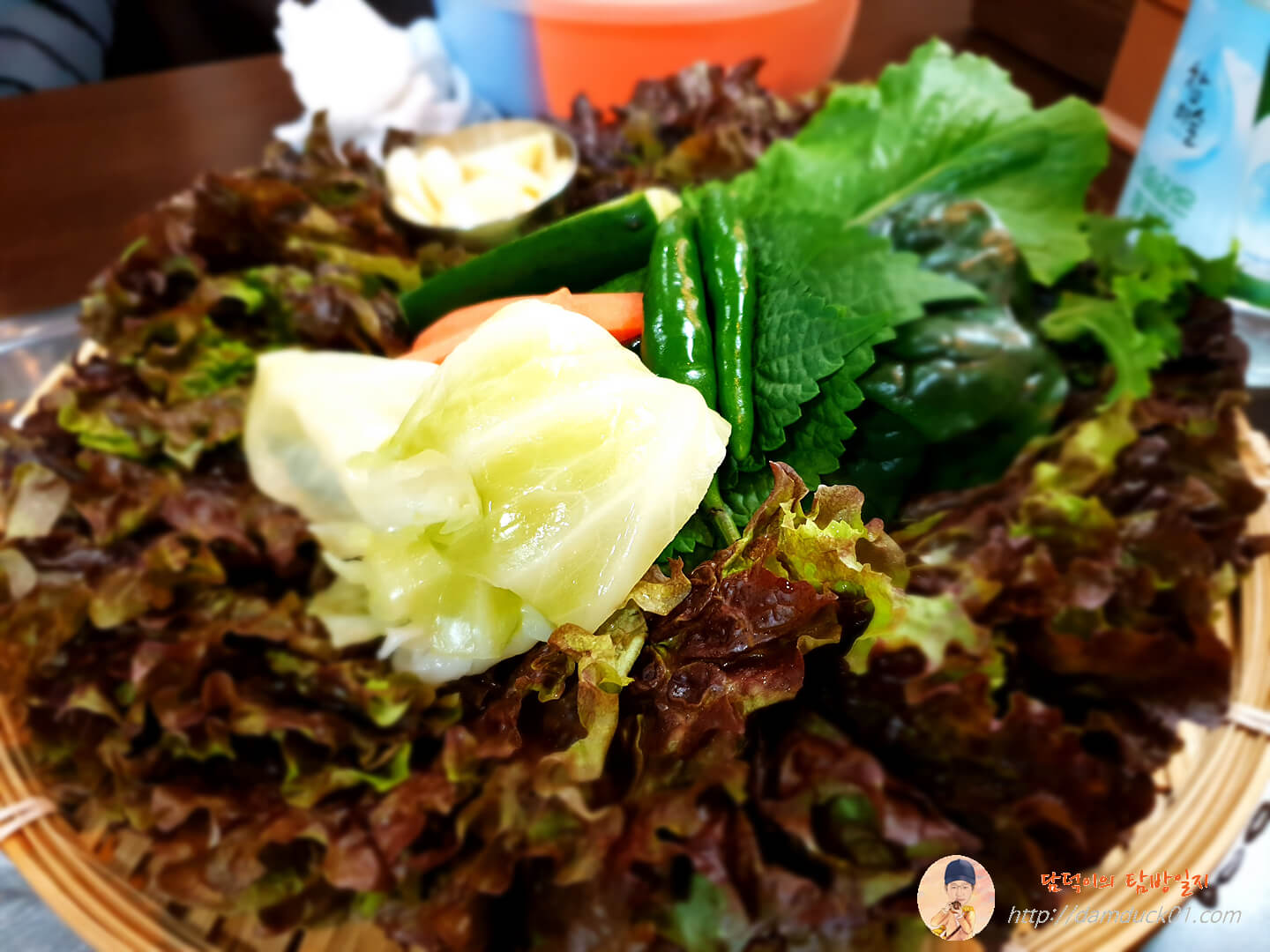 쌈밥집의 기본은 쌈 채소라는 걸 새삼 깨닫게 해 준 돼지 한판 오신정의 신선한 쌈 채소들.
