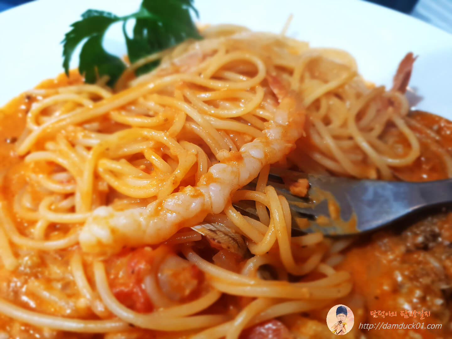 아~ 그리고 보통 파스타에 들어 있는 새우는 통통하고 작은 원으로 말려 있는 새우가 있는데 필하우스의 로제 스파게티 속 새우는 위 사진처럼 두께는 얇고 긴 새우가 들어 있어요.