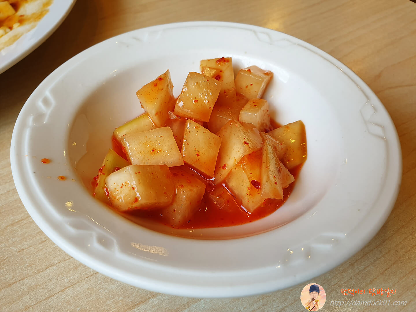 음식이 나오면서 깍두기도 한 접시 나왔습니다.