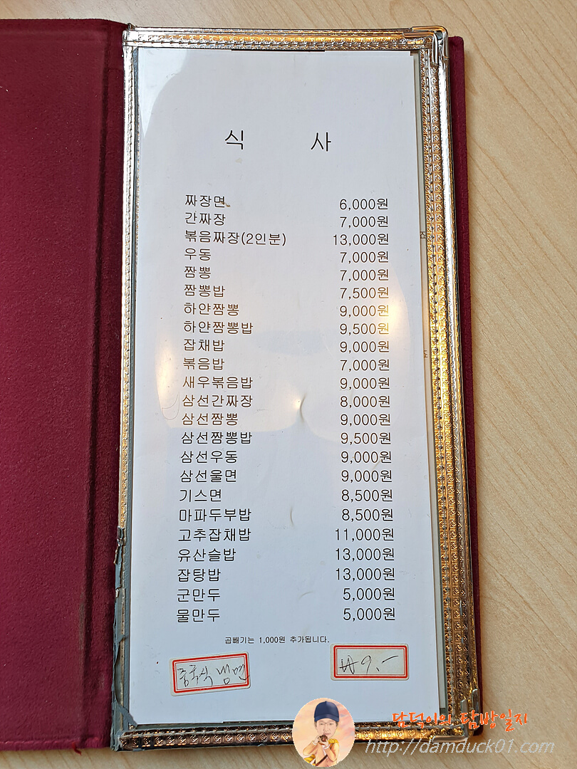 식사 메뉴는 첫 번째 장에 있는 게 전부인데 가격은 보통 정도 너무 저렴하지도 그렇다고 비싸지도 않은 편입니다.