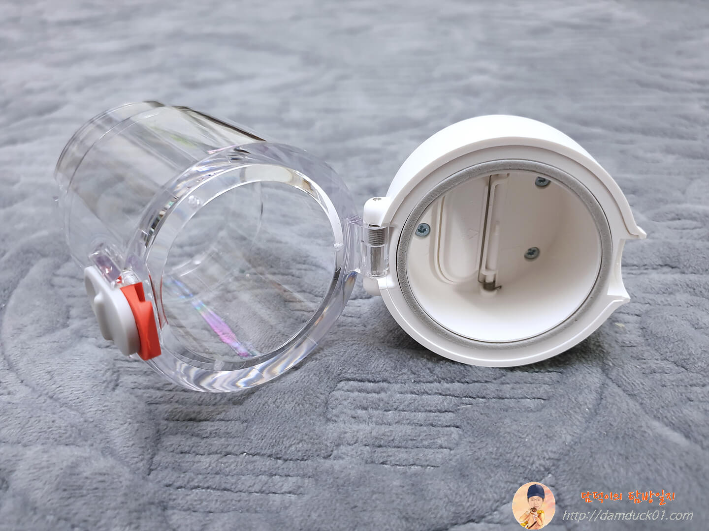 여기를 살짝 돌려주면 이렇게 분리가 가능합니다. 여과망과 헤파 필터 이중 구조로 되어 있는데 이 헤파 필터도 물청소가 가능하다고 하는데 청소 후는 완전히 말려서 사용을 해야 할 거 같아요. 그리고 헤파 필터는 소모품으로 별도 구매가 가능한데 정식 출시가 안 된 제품이라 필터도 직구로 구매를 해야 할 거 같아요. 한 번 알아보니까 9,000원대로 구매가 가능하다고 합니다.