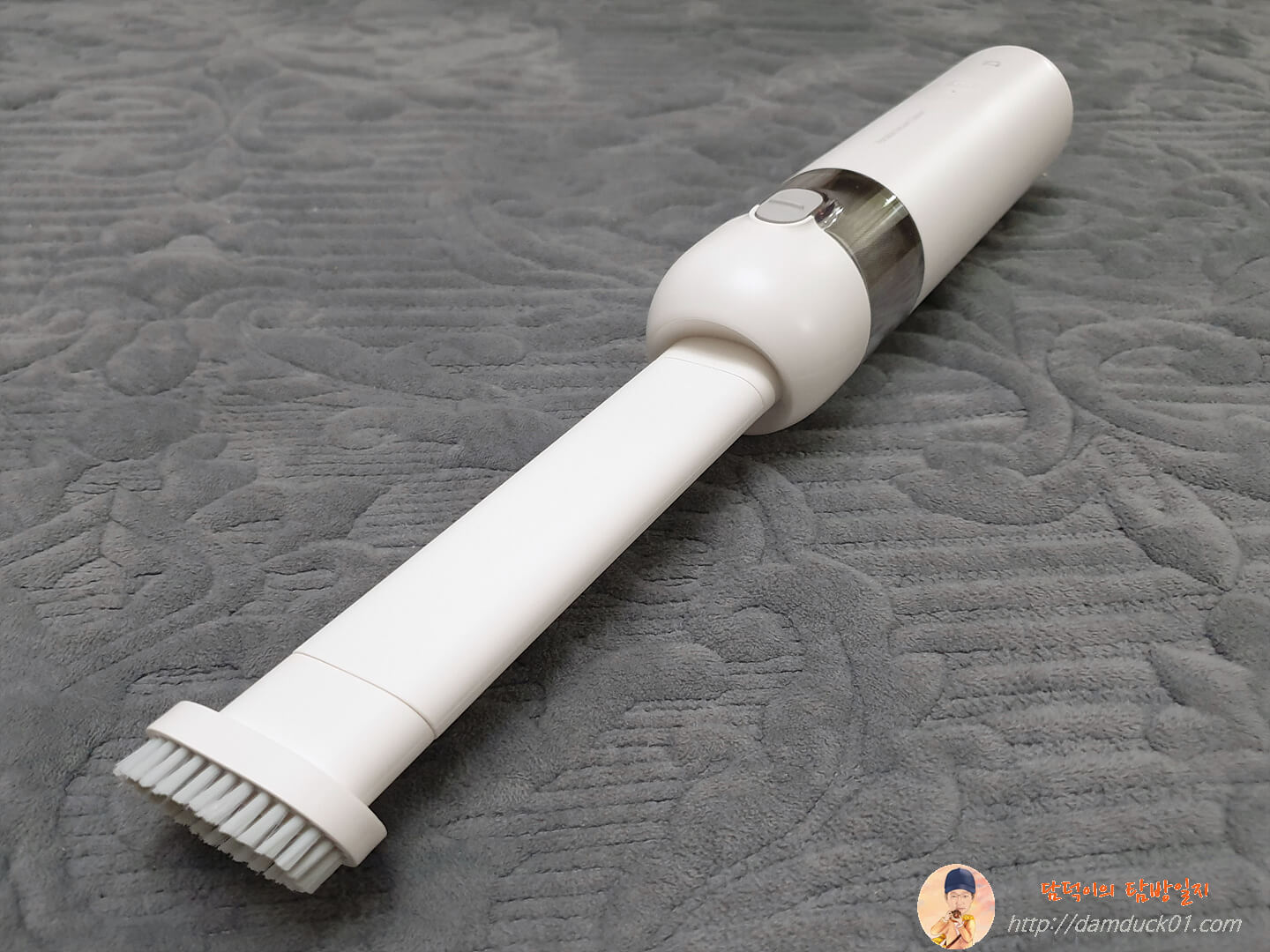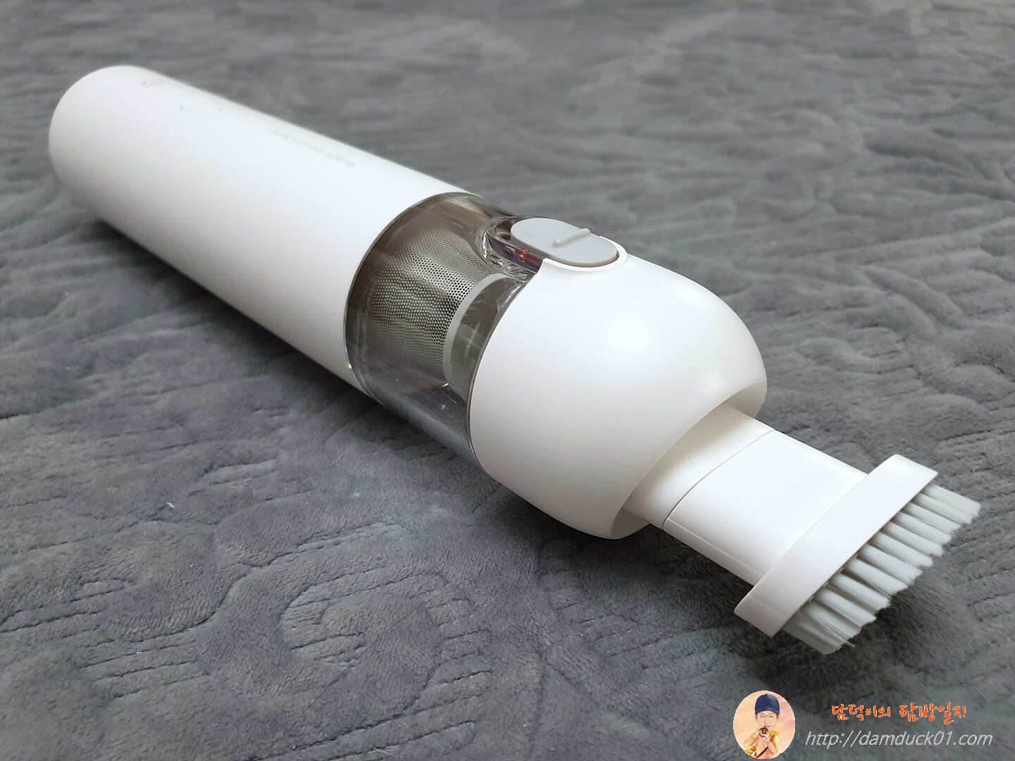 샤오미 미지아 차량용 핸디 무선 청소기는 이렇게 기본 액세서리로 들어있는 틈새 흡두를 연결해서 자동차의 의자 사이 틈이나 집에서의 소파 사이 침대 밑 같은 곳도 청소가 가능해요.