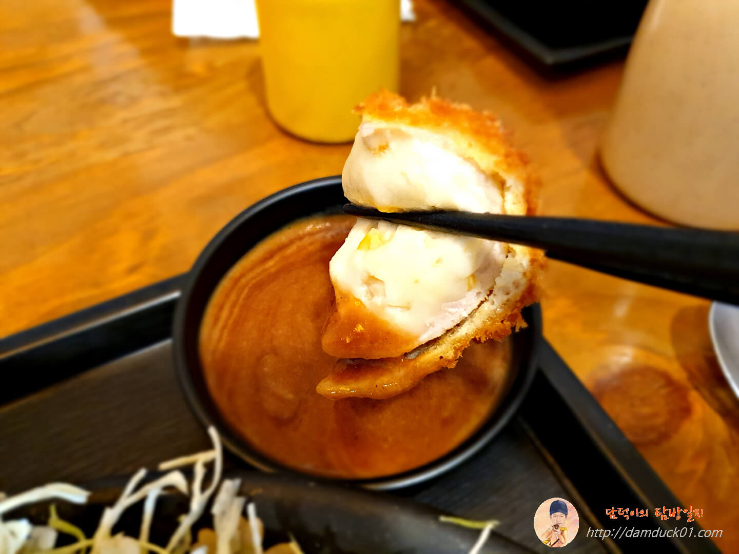 제가 주문한 치즈 돈가스가 나왔습니다.