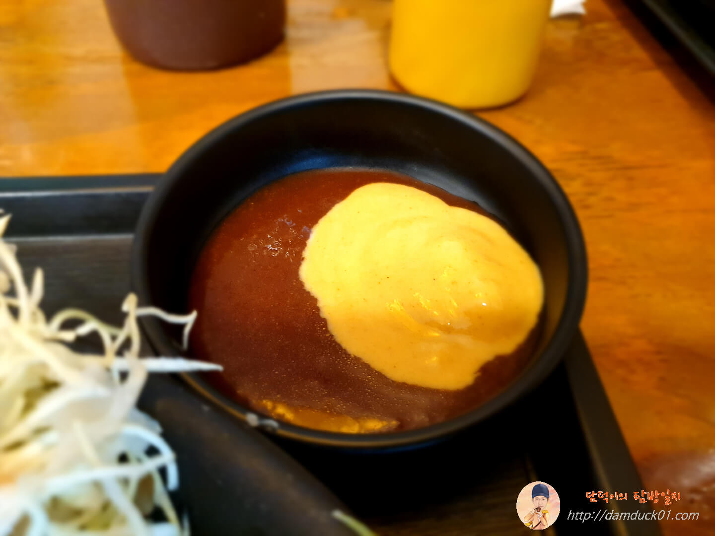 이렇게 완성된 돈가스 소스에 치즈 돈가스 한 조각을 콕 찍어서 먹으면 음~