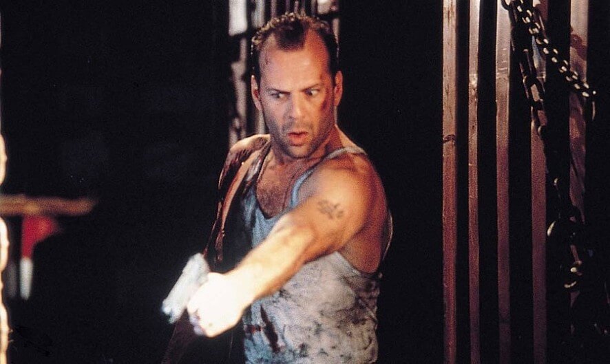 가족과 함께 크리스마스를 보내기 위해 로스엔젤리스로 온 뉴욕 경찰 존 맥클레인은 아내 회사의 크리스마스 파티에 참석했는데 테러리스트들이 그 회사 건물을 점령하고 신발도 없이 권총 한 자루만 가진 그가 12명의 무장 테러리스트를 처치하는 내용이죠.