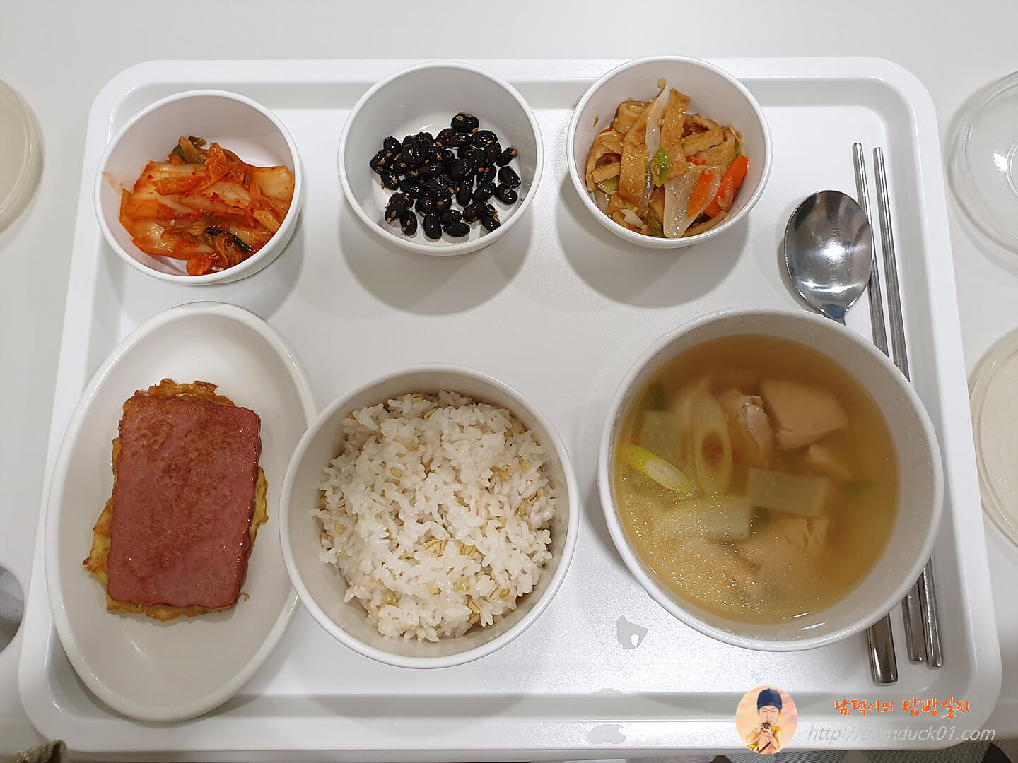 그리고 그날 저녁 식단이 바로 위 사진에 나온 식단인데요. 병원에서 나오는 밥 치고 꽤 괜찮게 나오는 거 같죠?