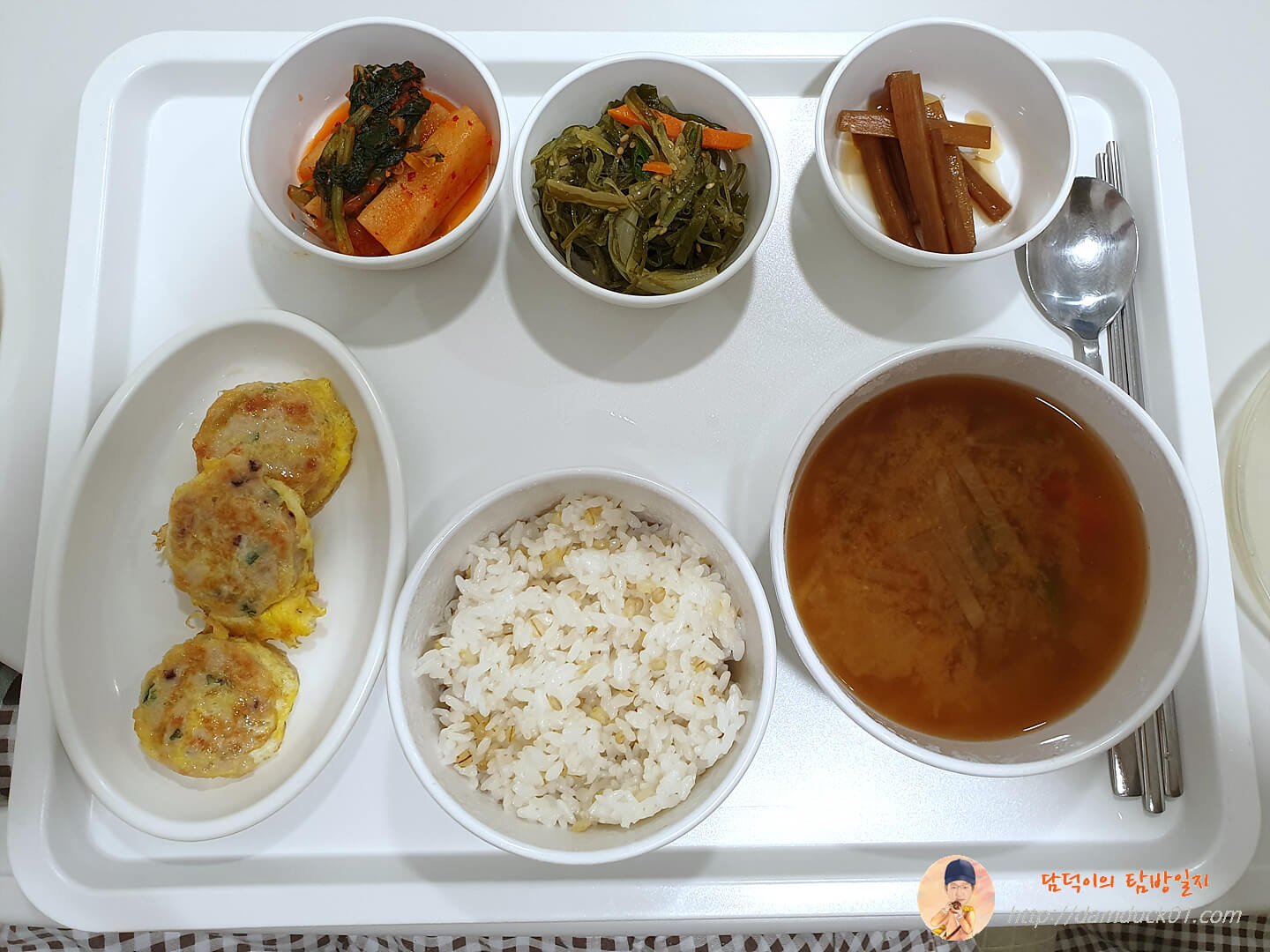 그러던 중 병원 밥이 맛없게 느껴지는 가장 큰 원인을 찾았습니다. 바로 밥이었는데 이 밥이 너무 퍽퍽해요. 밥솥에 한 밥이 아니라 왜 대량으로 밥 할 때 보통 밥을 찌잖아요. 그런데 아무리 찐 밥이라도 이렇게까지 퍽퍽하지는 않은데 이건 물 조절이 잘 못 된 건지 쌀이 안 좋은 건지 모르겠는데 밥이 너무 퍽퍽해서 나중에는 밥은 남기게 되더라고요.