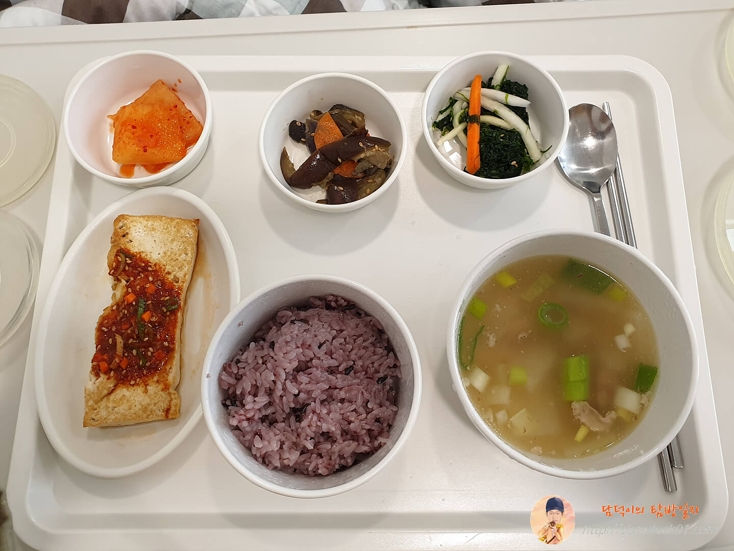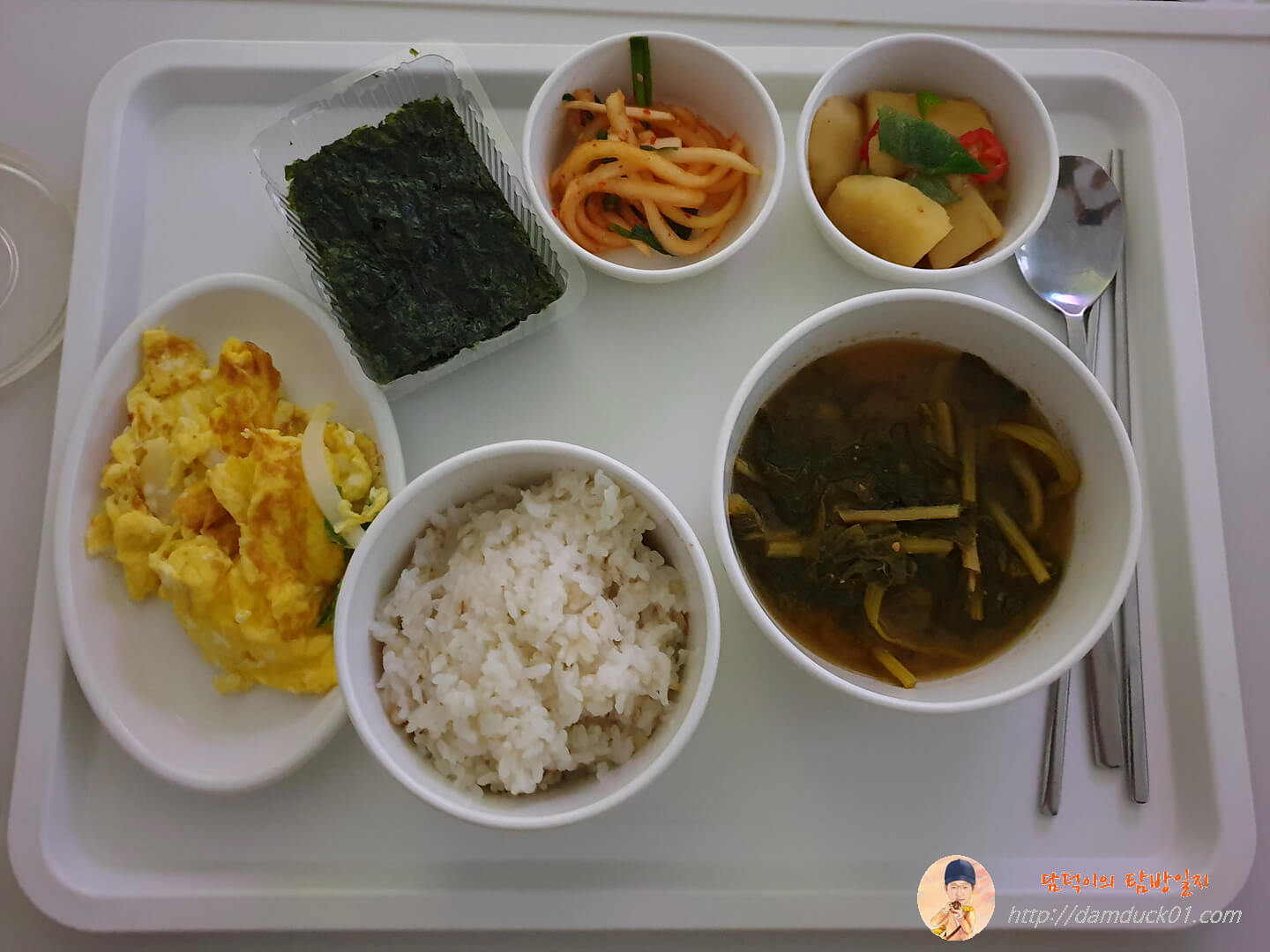 그리고 그날 저녁 식단이 바로 위 사진에 나온 식단인데요. 병원에서 나오는 밥 치고 꽤 괜찮게 나오는 거 같죠?