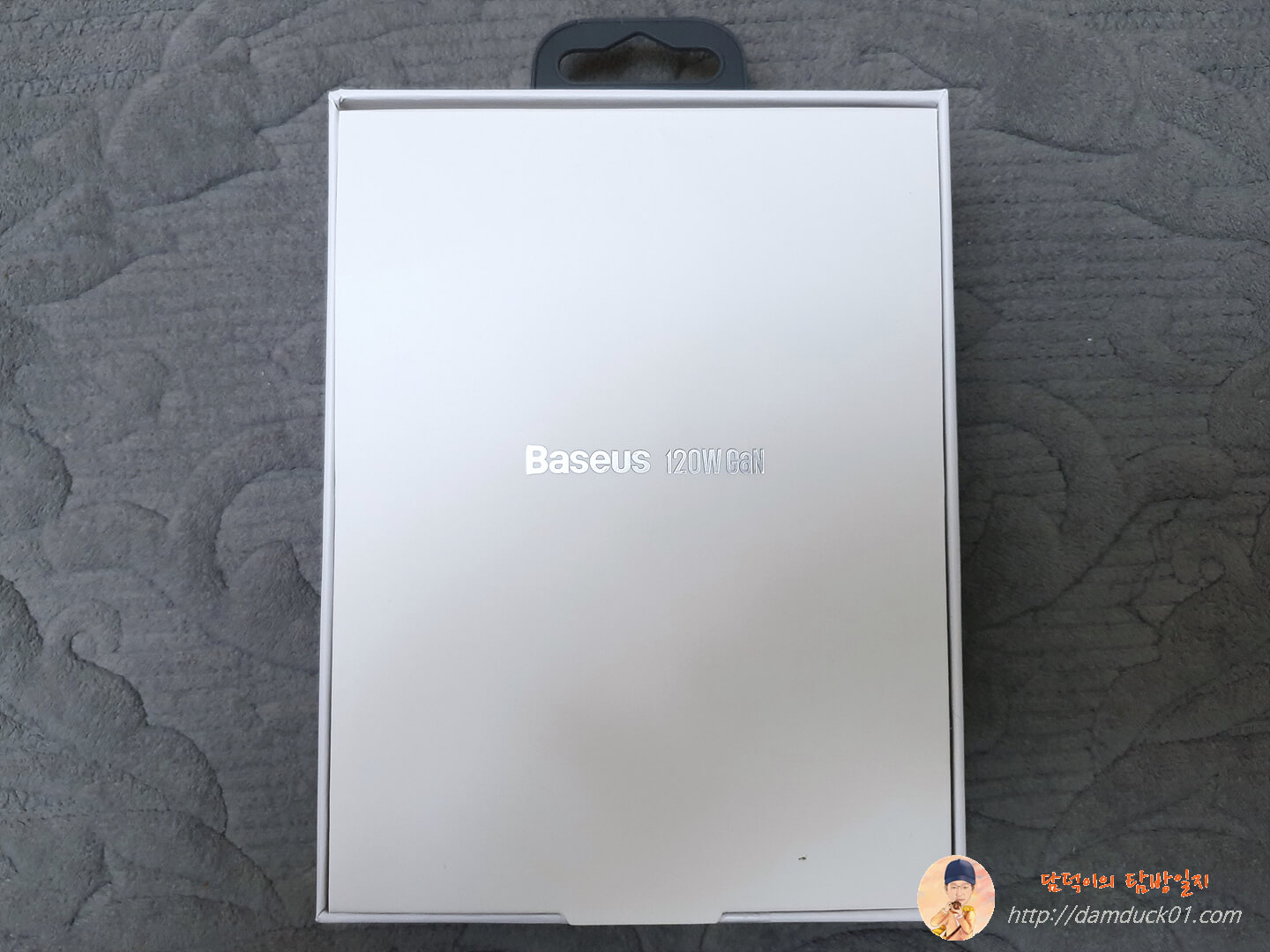 그럼 다시 베이스어스 GaN2 Pro 120W 고속 PD 멀티 충전기를 살펴보면 이렇게 상단에 Baesus가 별도의 공간에 인쇄가 되어 있고요. 국내 정식 출시된 만큼 한국형 플러그가 제대로 적용되어 있습니다.