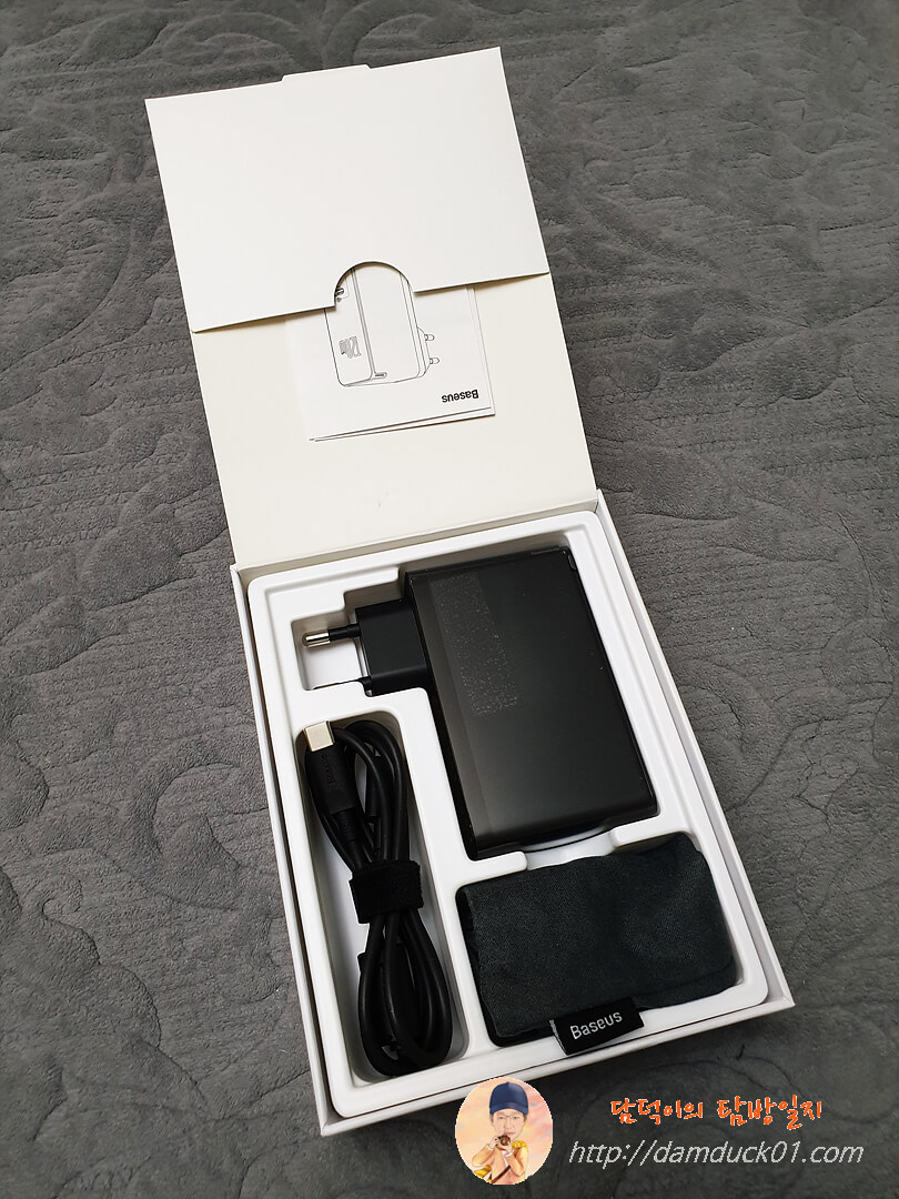 해외 구매도 아닌데 주문하고 4일 만에 받은 베이스어스 GaN2Pro 120W 고속 PD 멀티 충전기와 추가로 구매한 C타입 100W 고속 충전 케이블입니다. 충전 케이블도 하나 기본 구성이긴 한데 충전기의 충전단자가 C타입 2개, A타입 1인데 C에서 C로 되어 있는 케이블은 가지고 있는 게 별로 없는 데다가 100W까지 지원되는 케이블은 하나도 없는데 추가 판매하는 100W 케이블 가격이 9,900원으로 가격이 괜찮더라고요. 그래서 추가로 하나 더 구매했습니다.