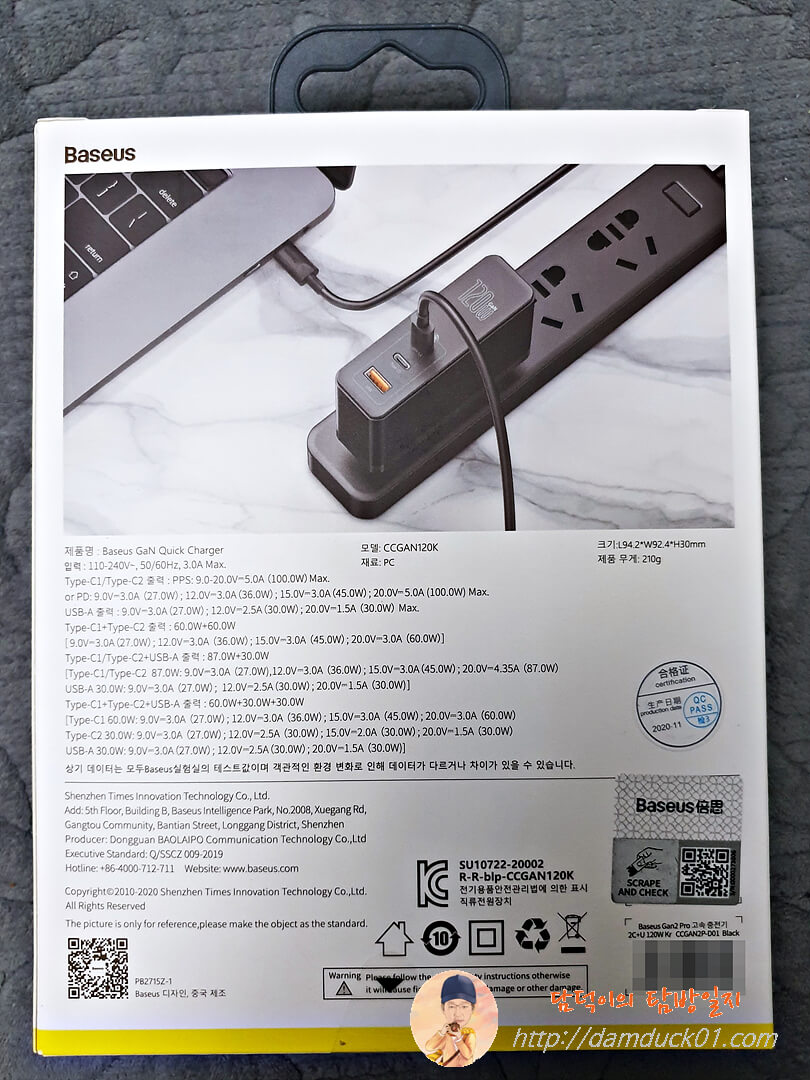 케이블까지 다 하면 부피도 훨씬 적고 게다가 베이스어스 GaN2 Pro 120W 고속 PD 멀티 충전기를 가지고 다니면 노트북과 태블릿, 스마트폰까지 동시 충전이 가능하거든요. 아주 만족스럽습니다.