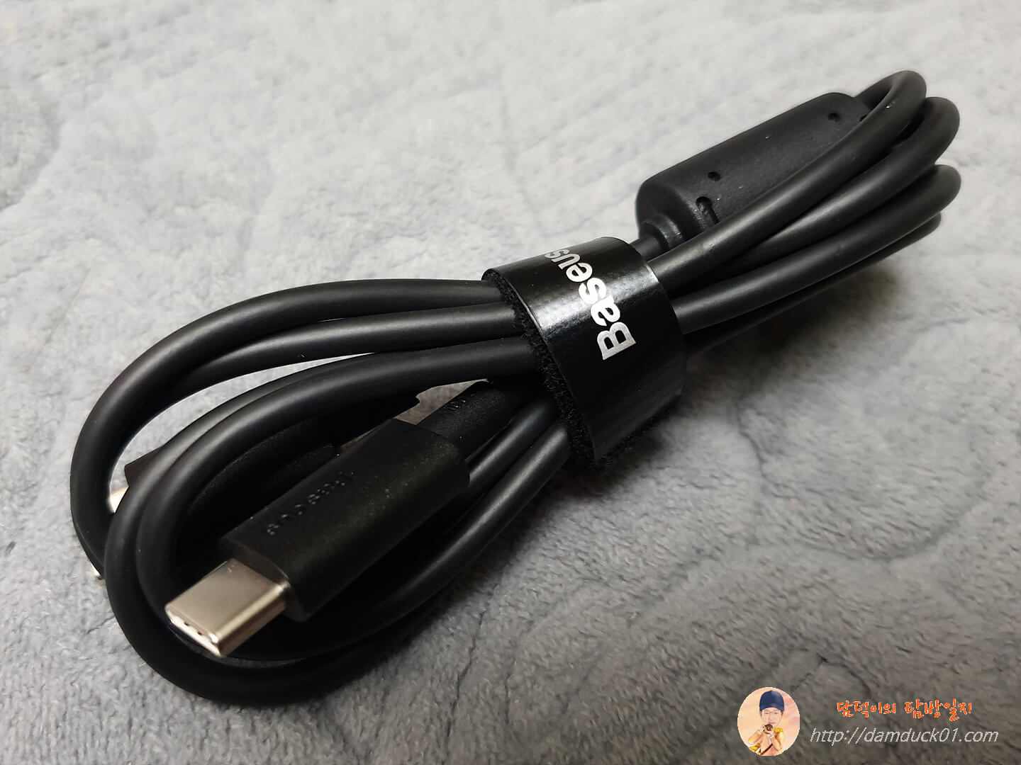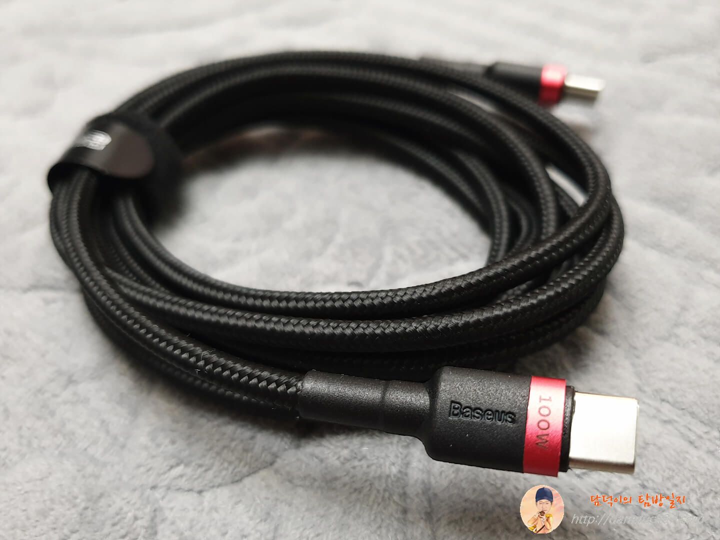 기본 구성품으로 제공되는 Type-C에서 Type-C로 가는 케이블 역시 100W를 지원하는 케이블입니다. 깔끔하게 Baseus가 인쇄된 정리용 벨크로까지 있는 케이블이네요.