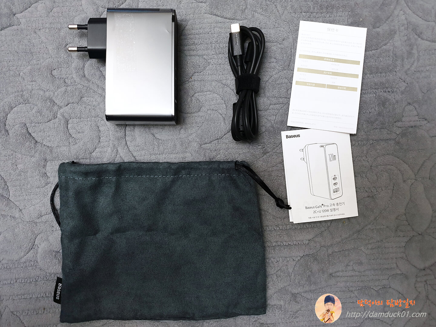 전체 구성품은 위와 같아요. GaN2 Pro 멀티 충전기, 100W 지원 Type-C에서 Type-C 케이블, 품질 보증서와 사용설명서, 그리고 파우치까지 꽤 알찬 구성이라고 생각됩니다.