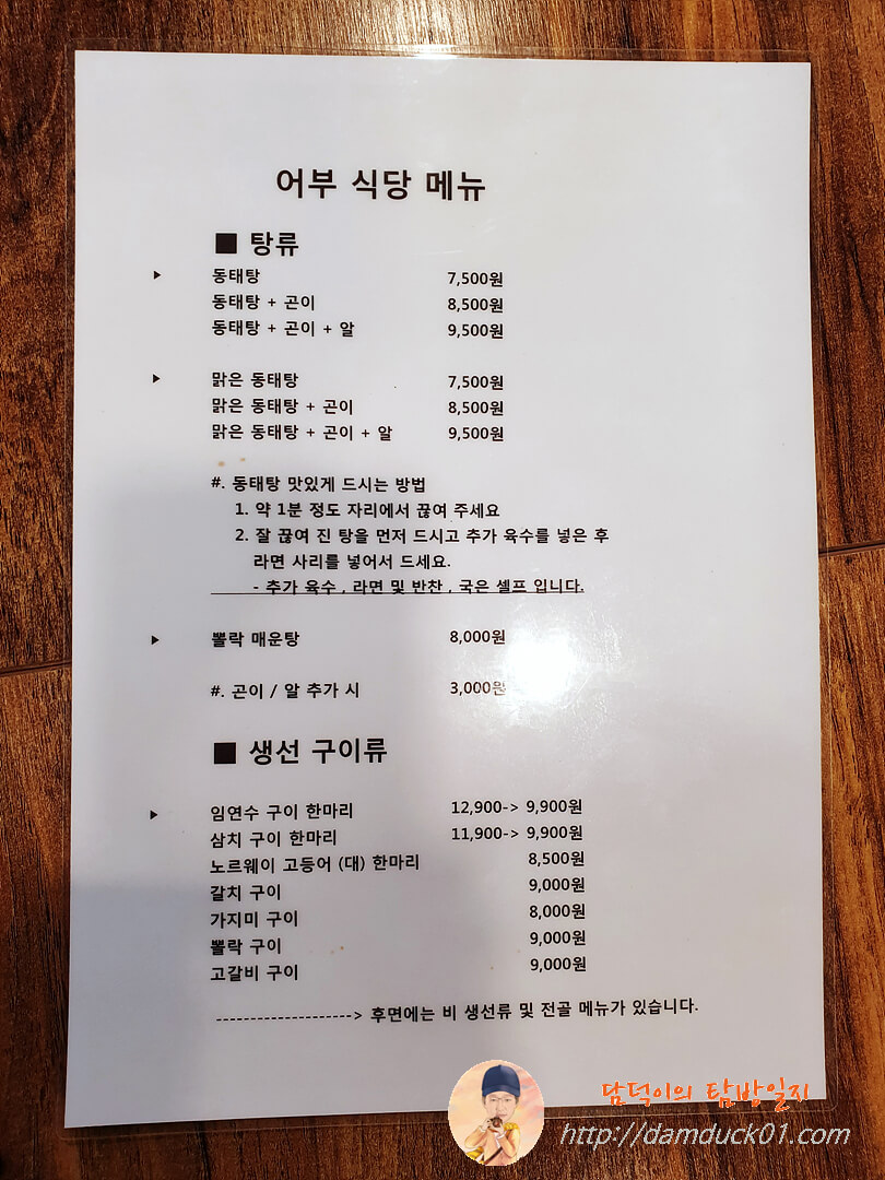 동태탕 + 곤이 + 알을 2개 주문하고 삼치구이 한 마리와 볼락 구이를 주문했는데요.