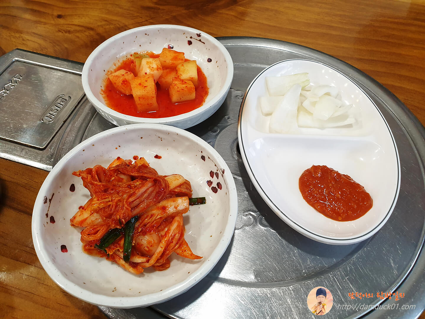 깍두기랑 배추김치 그리고 생양파와 쌈장입니다.