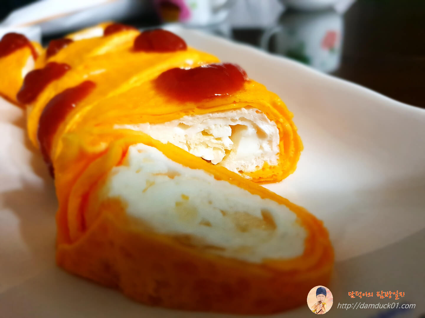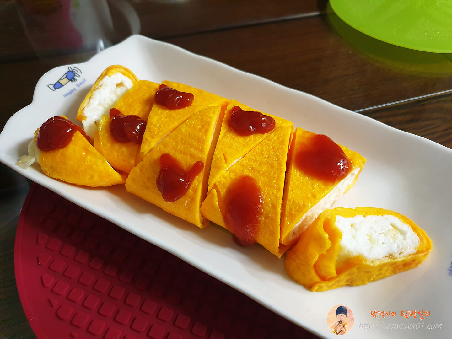 그런데 이 달걀말이는 노른자 겉 안에 흰자로 채워져 있어서 제가 거꾸로 달걀말이라고 적어 봤어요.