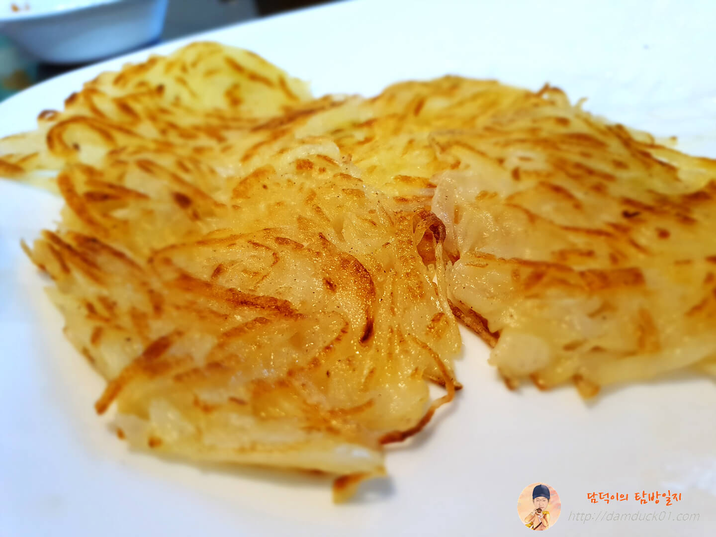 그런데 이렇게 감자를 채로 썰어서 전을 부치면 감자전과 식감은 다르지만 맛있죠.