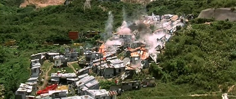 영화 시작부터 마약 조직을 일망타진하는 과정 중에 대규모의 총격신과 산자락에 위치한 마을을 자동차로 다 부숴버리는 화끈한 차량 액션을 보여주는데 저 차량 액션 역시 CG가 아닌 진짜 액션이죠.