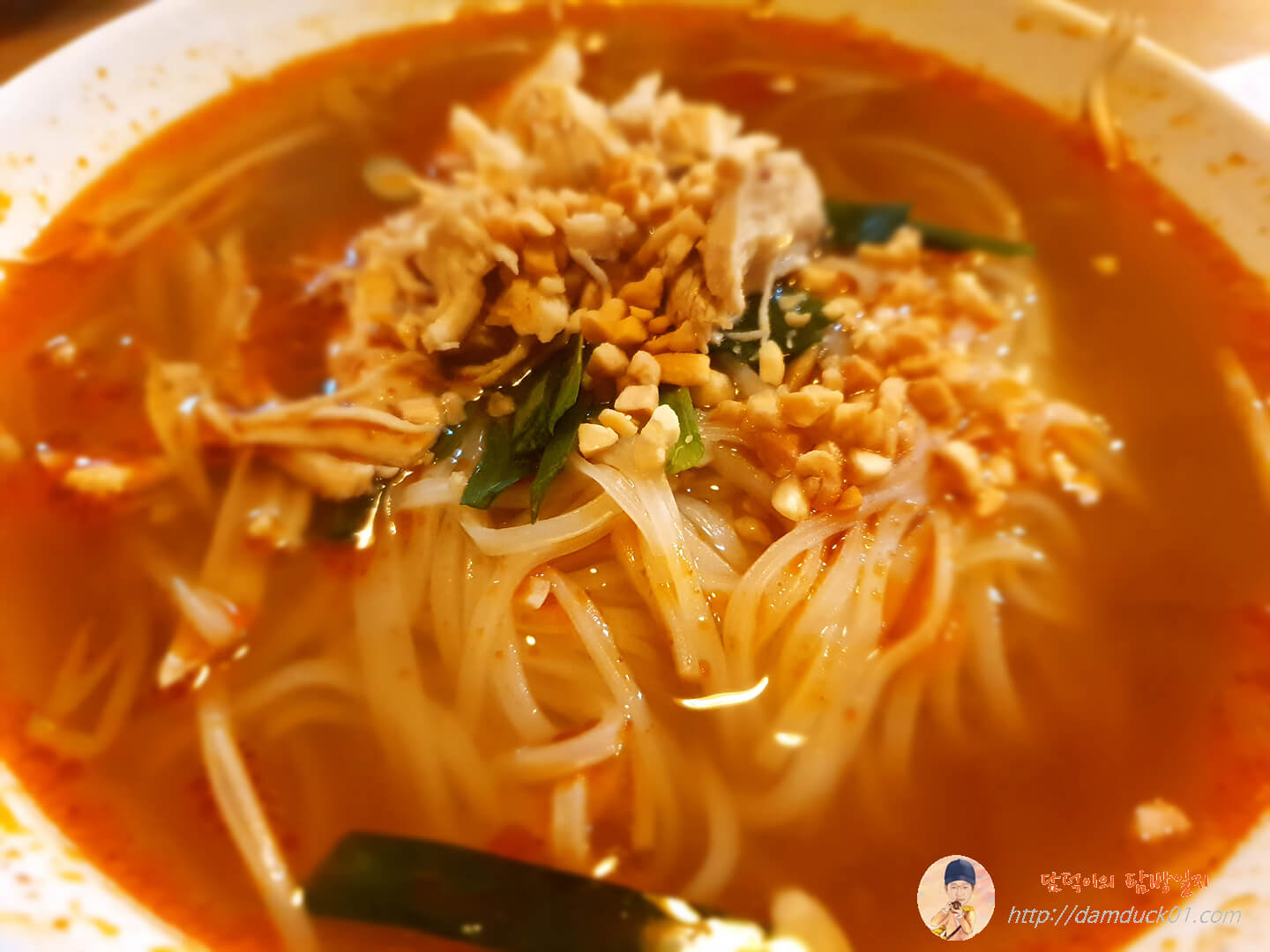 소고기가 아닌 닭고기가 들어간 매운 쌀국수인데요.