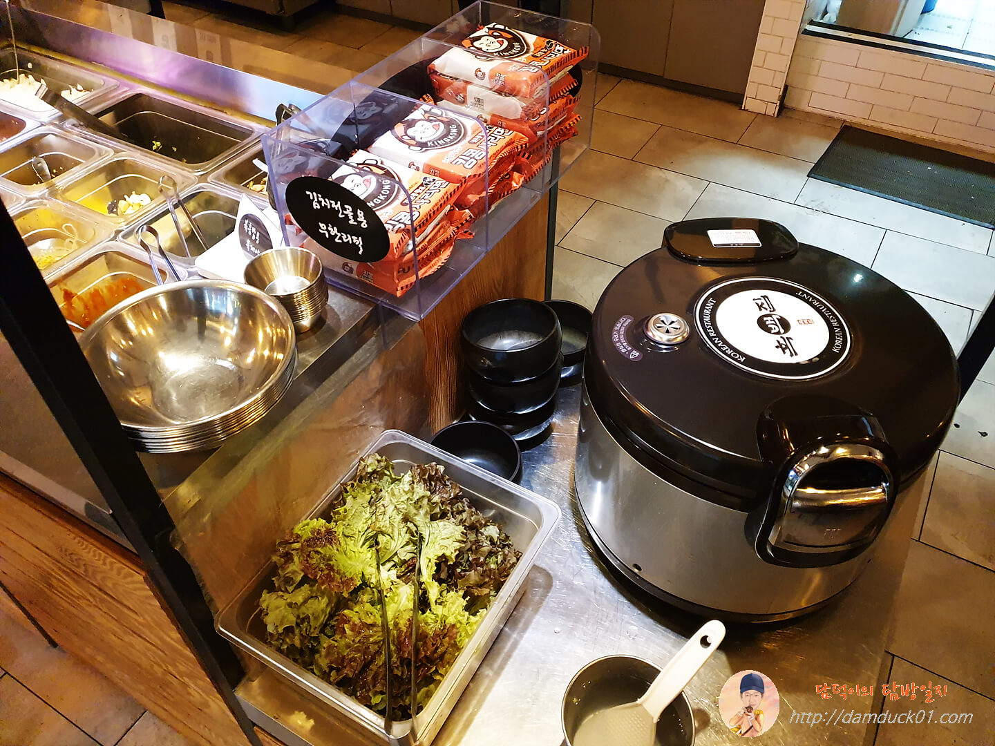 밥과 상추는 셀프바 옆에 여기 준비되어 있어요.