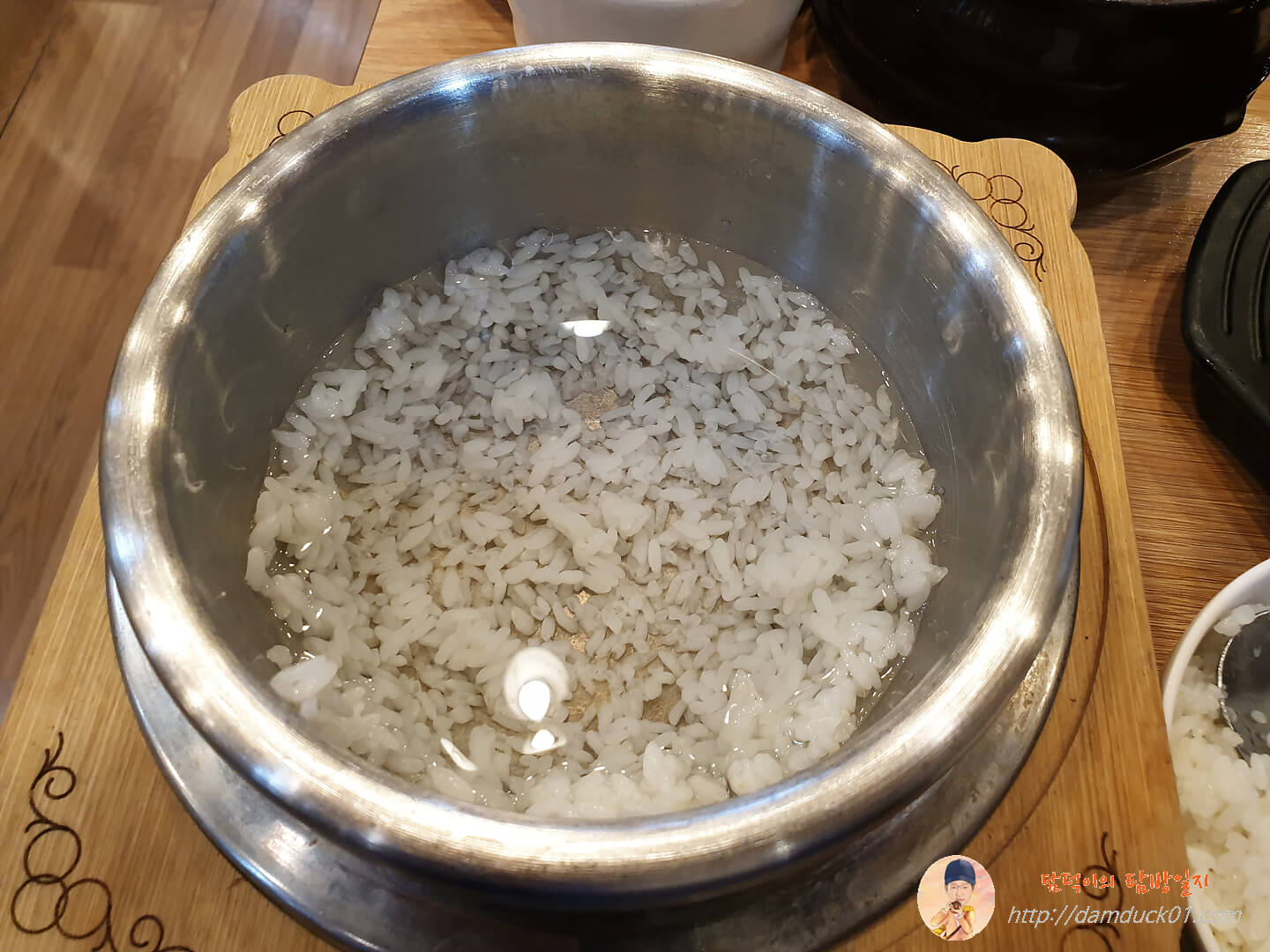밥은 밥그릇으로 덜어내고 뜨거운 물을 부어서 뚜껑을 덮어주고 맛있는 숭늉이 만들어지길 바라며 식사를 시작합니다. 밥 다 먹고 나서 또 이걸 후루룩 먹는 이게 진짜거든요. ㅋ