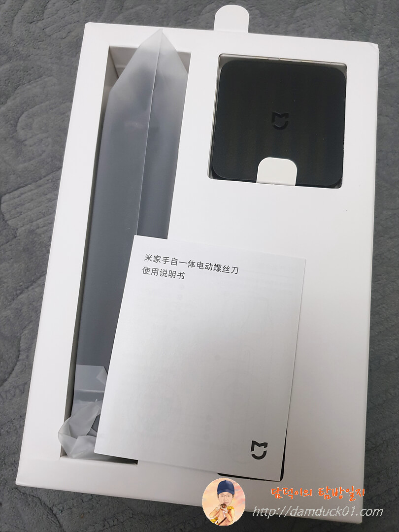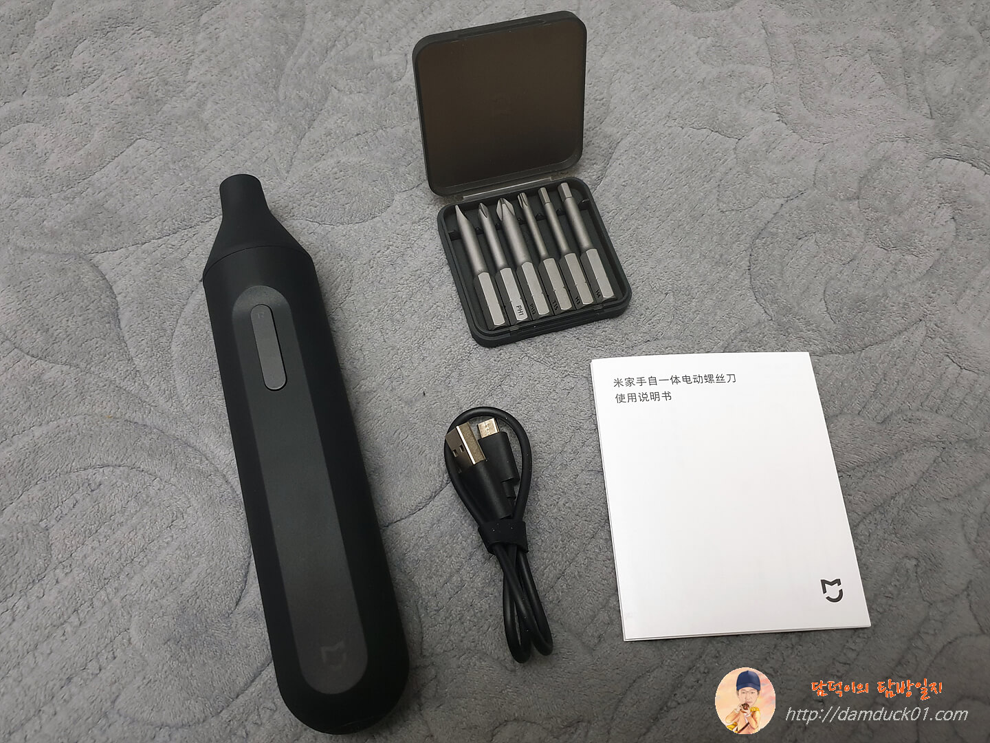 구성품을 살펴보죠. 샤오미 미지아 전기/수동 스크루 드라이버 본체와 6개의 종류와 사이즈별 비트가 케이스에 담겨 있고 충전 케이블과 한자만 적혀 있는 설명서가 구성품의 전부입니다.
