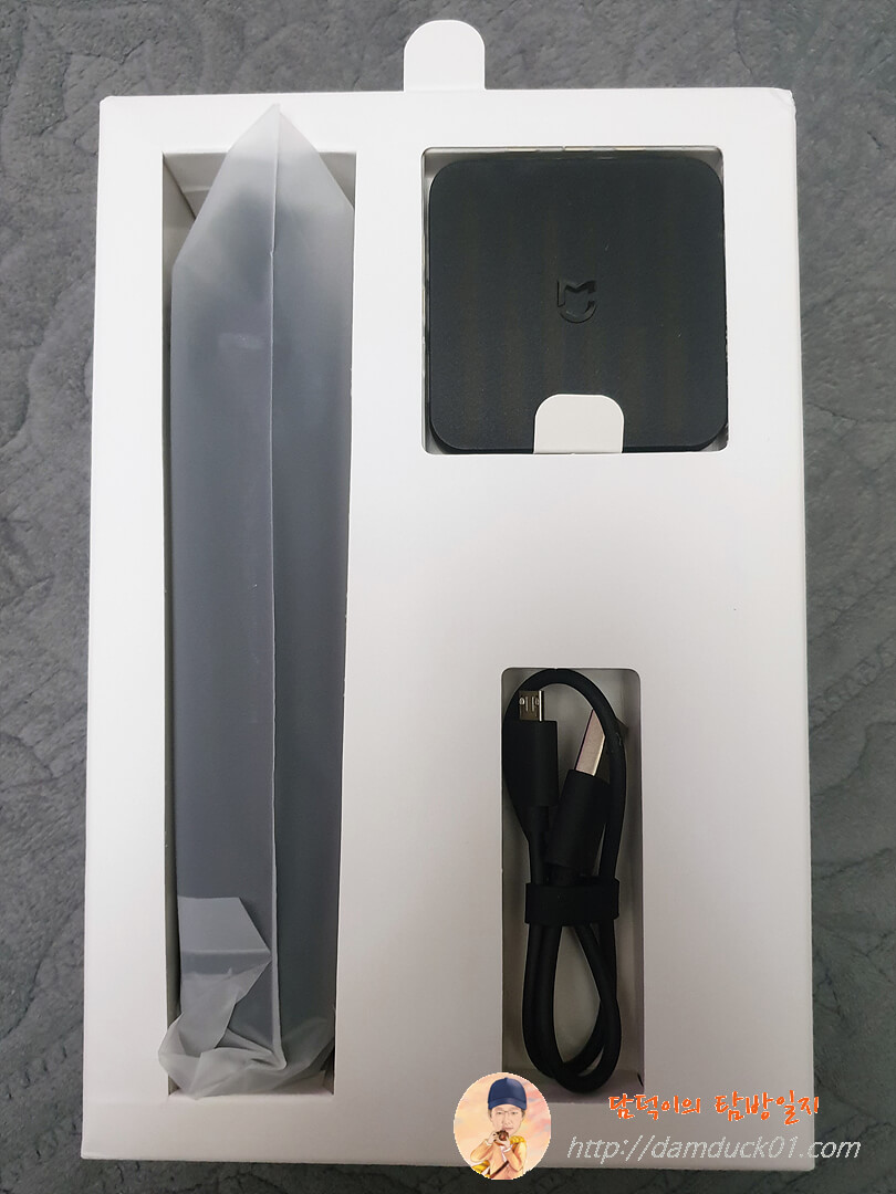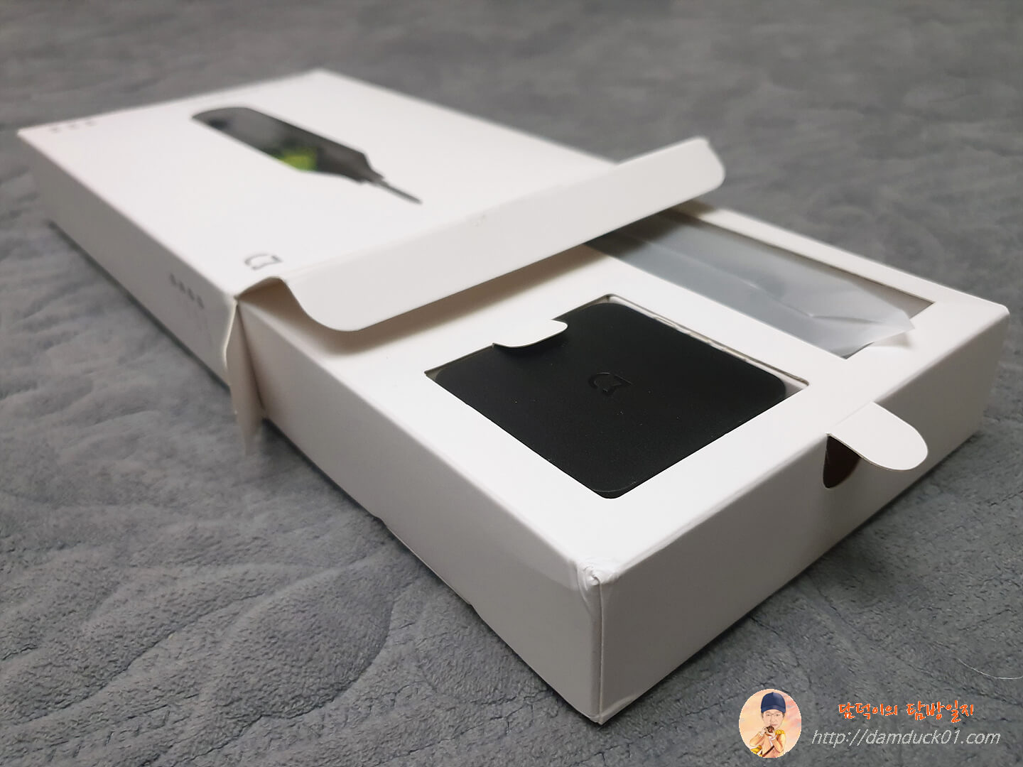 이상한 건 상자 겉은 눈에 띄는 찌그러짐이 없었는데 오히려 안쪽 상자 모서리는 충격받은 형태가 보이네요. 뭐 제품만 이상 없으면 되는 거라서 그냥 넘어갑니다. 상자를 쉽게 뺄 수 있도록 속 상자에 손잡이 역할을 하도록 만들어 둔 건 좋은 거 같아요. 샤오미 칭찬해~