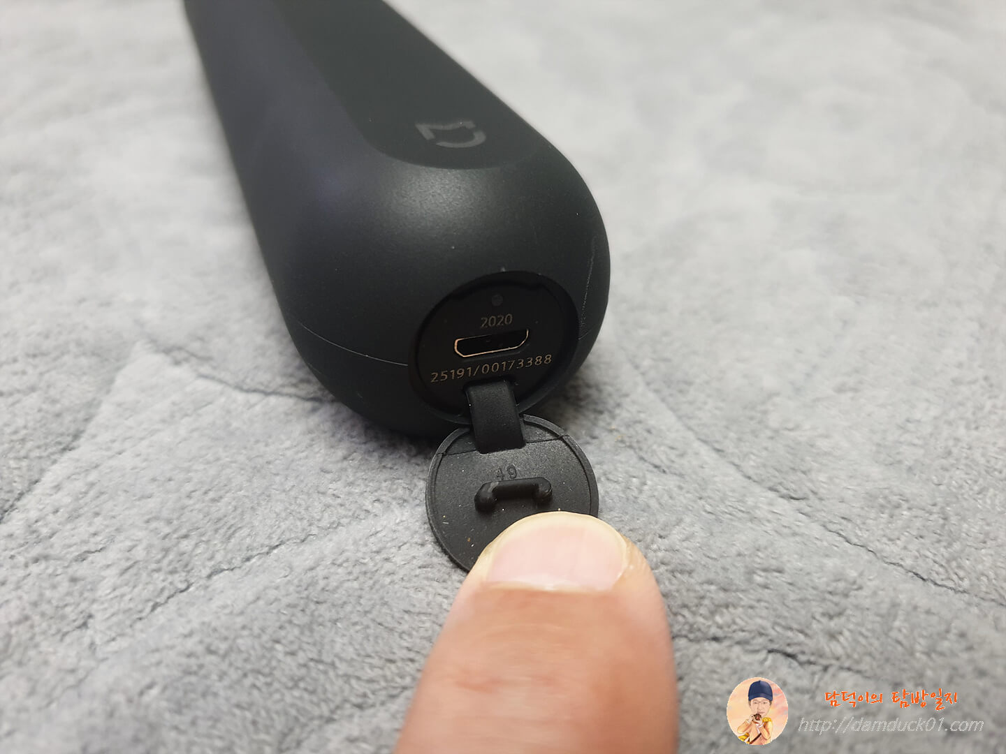 그 덮개를 열면 충전단자가 있는데 아~ 이건 좀 거시기합니다. 이 제품이 정확히 언제 출시된 건지는 모르겠지만 2021년에 마이크로 5핀 충전 단자라니요. 가끔 보이는 이런 제품들 때문에 집에 마이크로 5핀 케이블을 정리하기도 참 애매하다니까요. 그리고 충전 단자 위로 작게 LED가 하나 보이는데 이 LED를 통해 충전 상태를 확인할 수 있습니다.